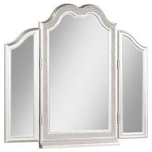 $573.00Complete your Evangeline vanity with this tri-fold mirror, offering a perfect view for hairstyles and makeup, featuring diamond trim and a soft silver finish.