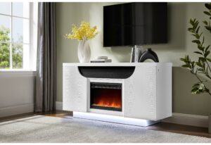 AILEEN WHITE 66″ ENTERTAINMENT UNIT WITH LED, SPEAKERS, CRYSTAL INSERTS AND POP UP CENTER DOORS