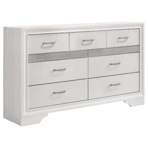 $709.00Infuse your space with sophisticated grace. The Miranda dresser features chic design, felt-lined drawers, a hidden jewelry drawer, and a glittery panel. -