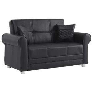 Ottomanson Avalon Collection Upholstered Convertible Loveseat with Storage, Black-PU