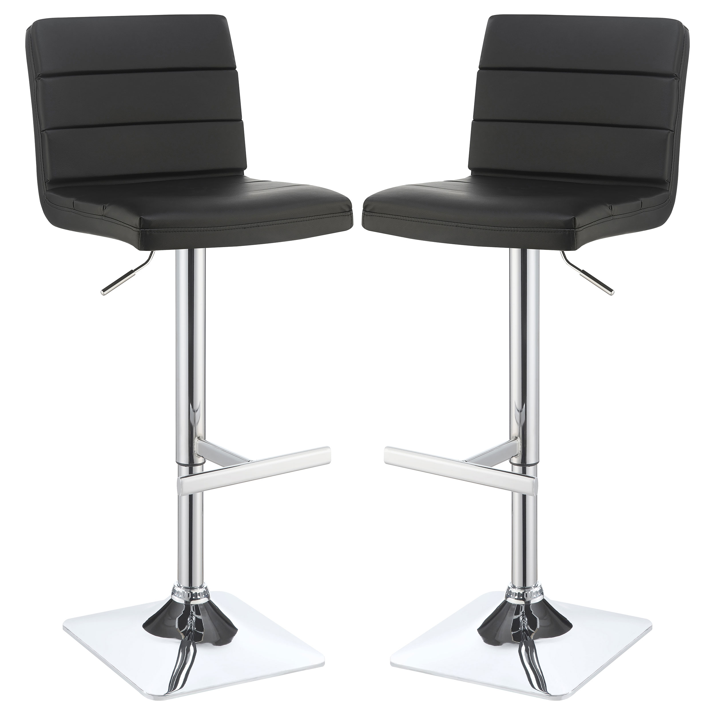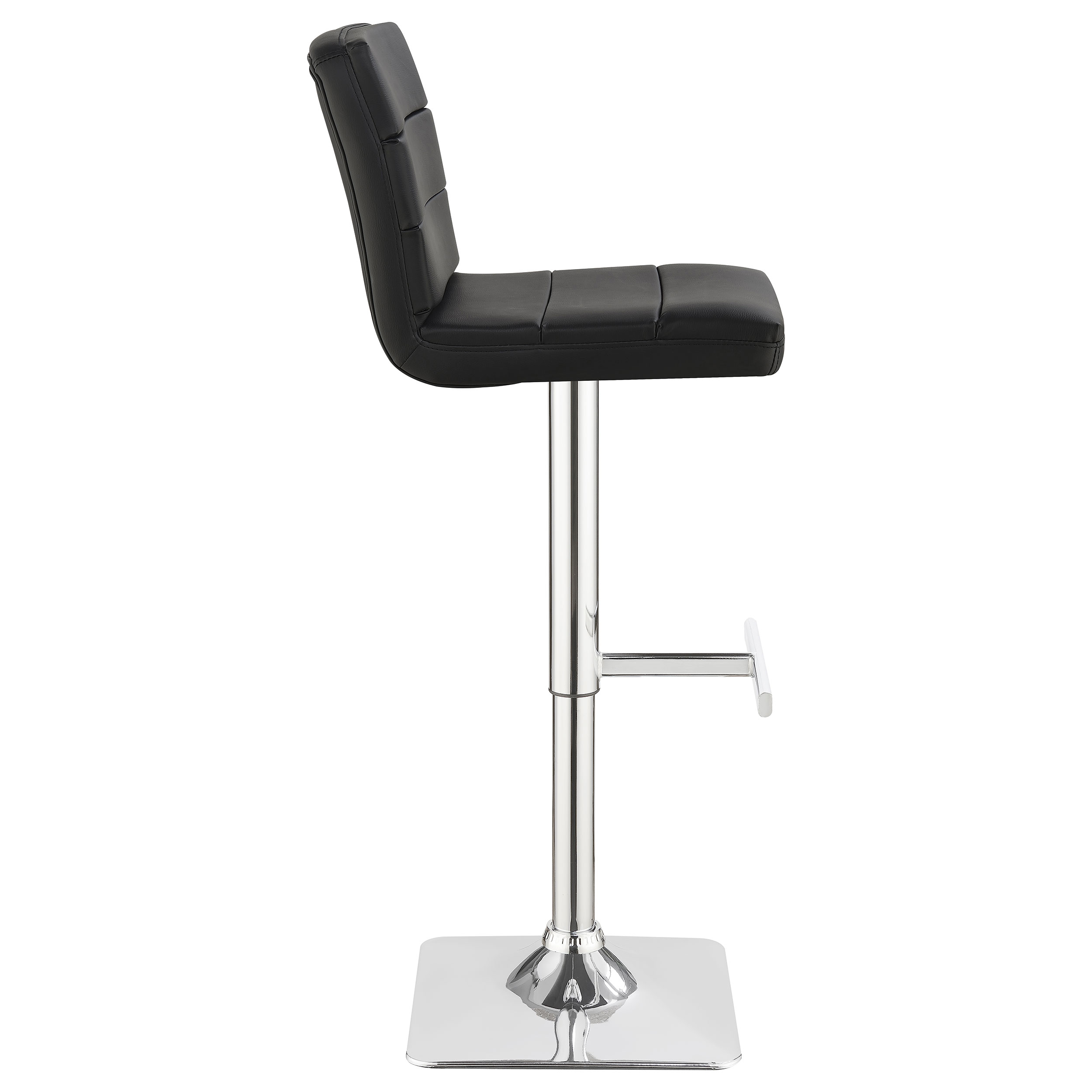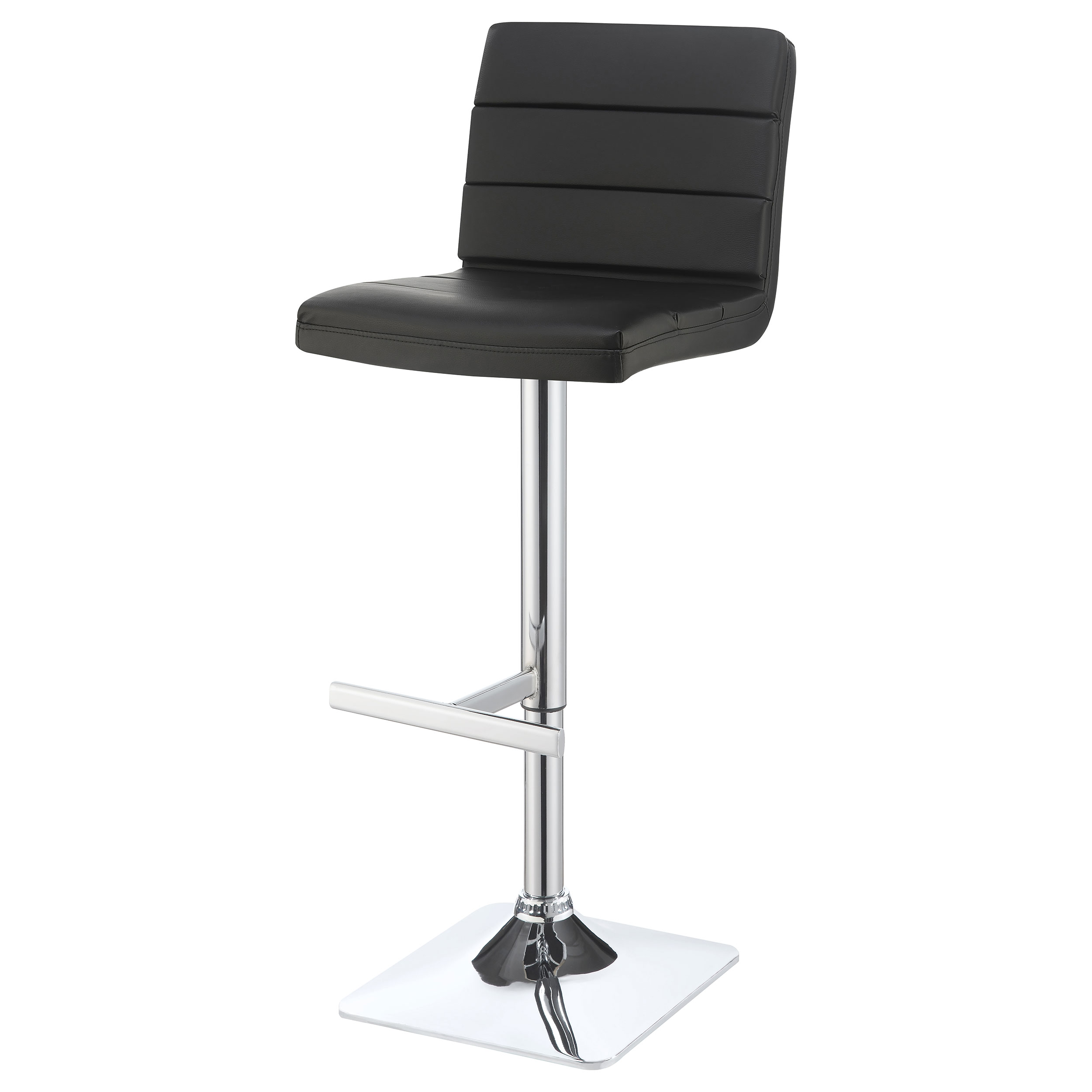 - Pedestal base with square foot and built-in footrest in chrome finish for sleek, refined look