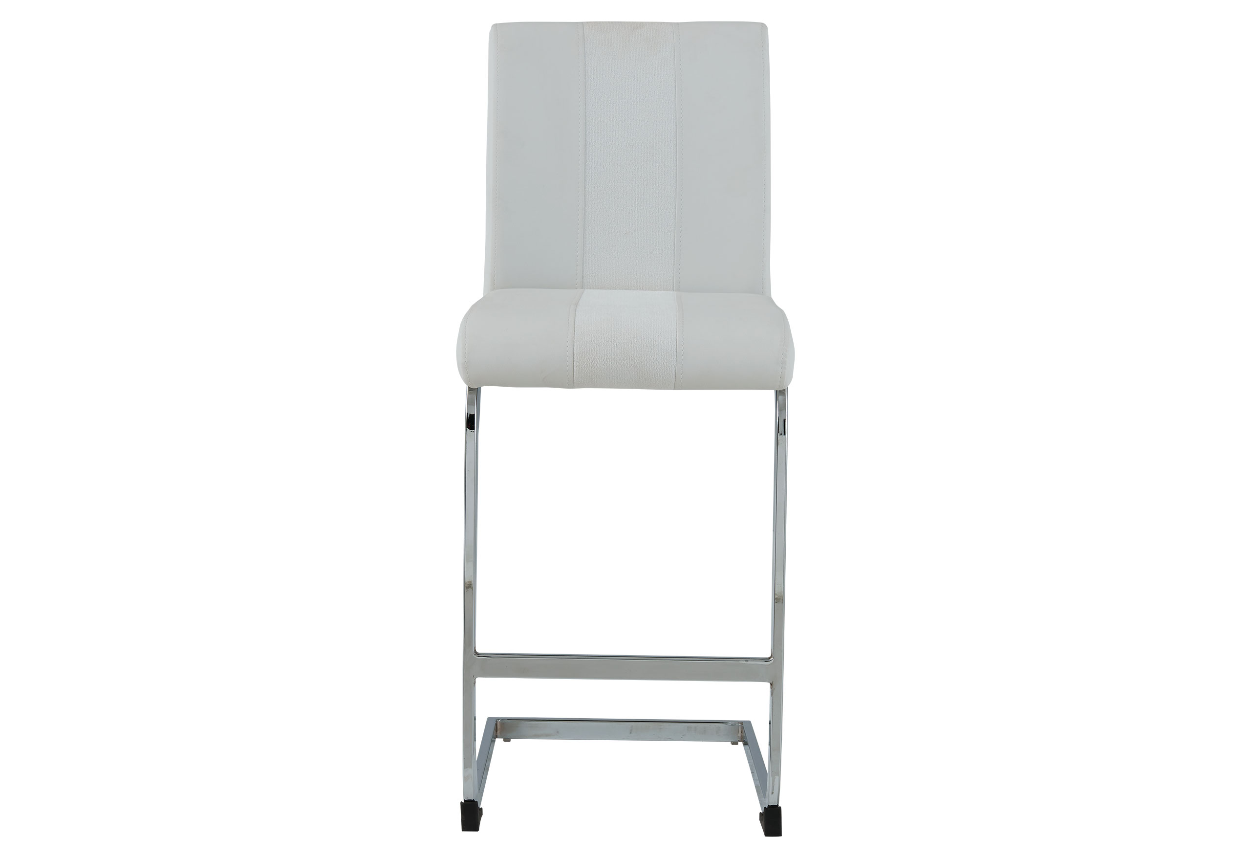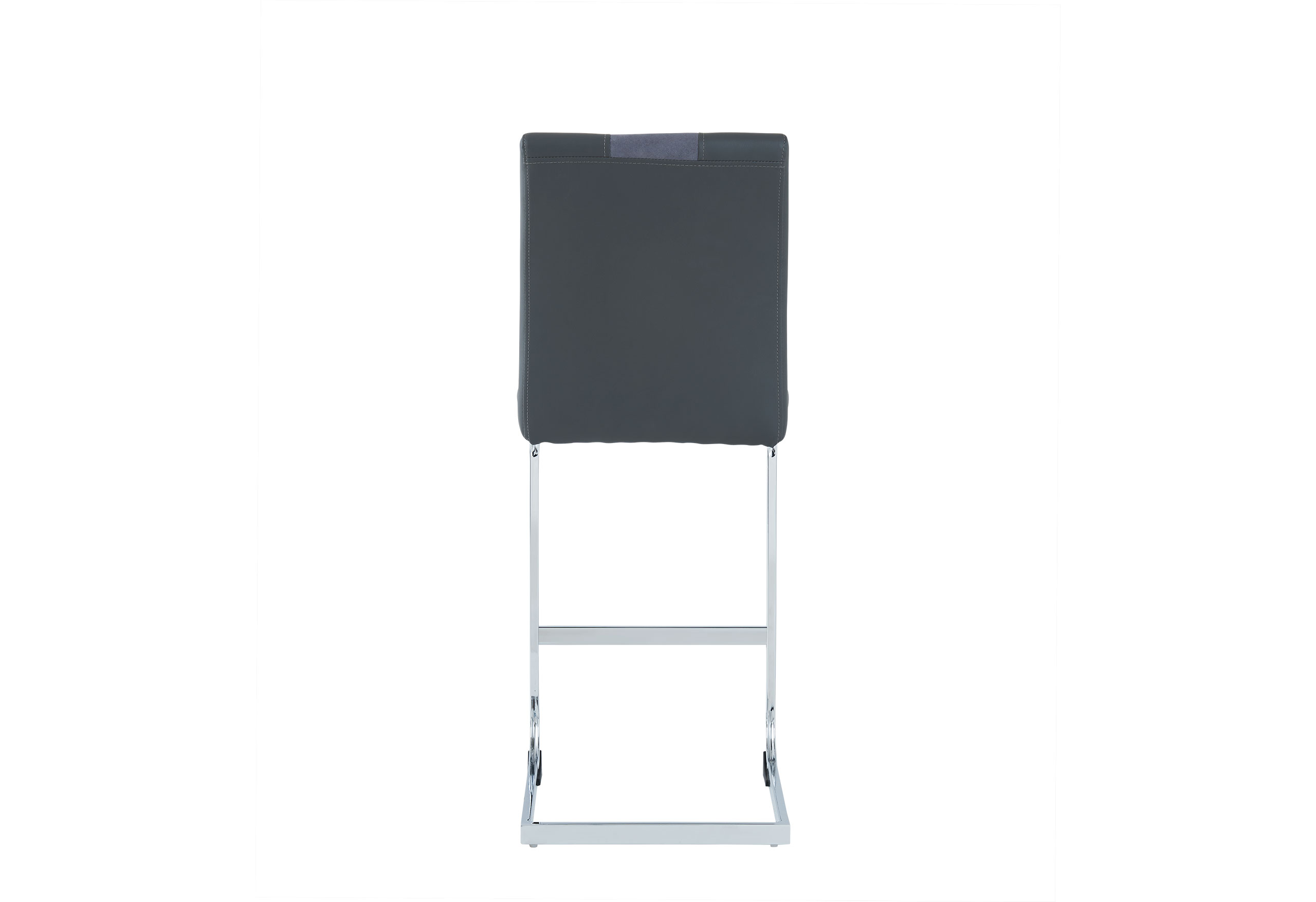 Perfect for your kitchen island or bar, this two-toned barstool will transform your room and add comfort and charm. This barstool is upholstered in tones of grey faux leather (PU) and fabric, providing an eye-catching and modern twist to traditional kitchen seating. Decorating possibilities are endless with the attractive tones of this piece. Additional design elements include a sleek style silver toned metal base and ample padding, continuing the delightful look and comfy feel of this seating. Quality craftsmanship in every facet of production ensures durability and long-lasting wear. For a stylish and modern take on kitchen or bar furnishings, this barstool is a can’t miss choice in comfortable seating.
