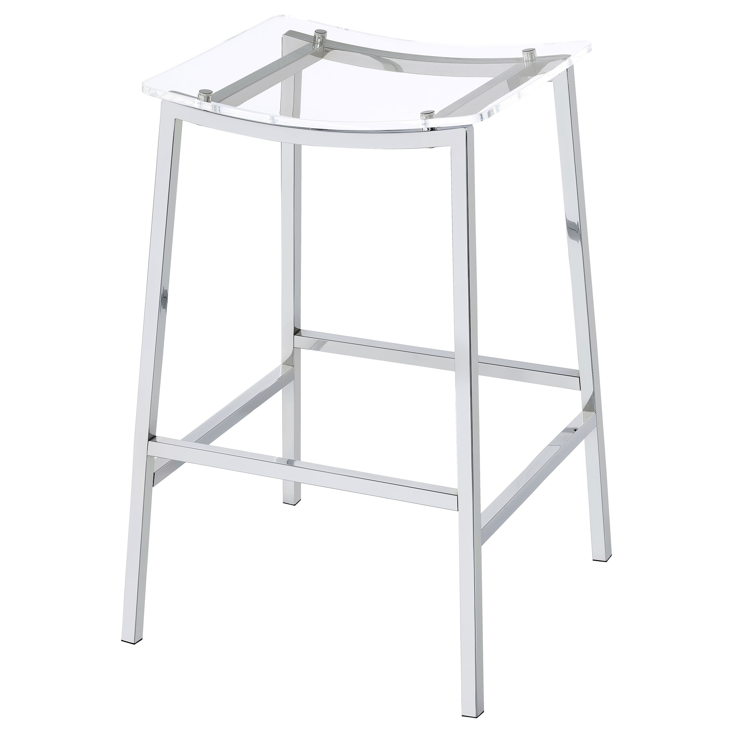 Updated to reflect the carefree contemporary style you crave, this set of two bar stools uses modern materials and finishes to bring a crisp look. Perfect for casual seating at a bar table or counter, these stools are lightweight yet sturdy. Gleaming chrome finish metal framing includes a two-bar seat support and built-in footrests. A gently curved seat made of acrylic reveals the nuts and bolts of metal framing. Add this bar stool set to your easy-living space for entertaining and family meals.