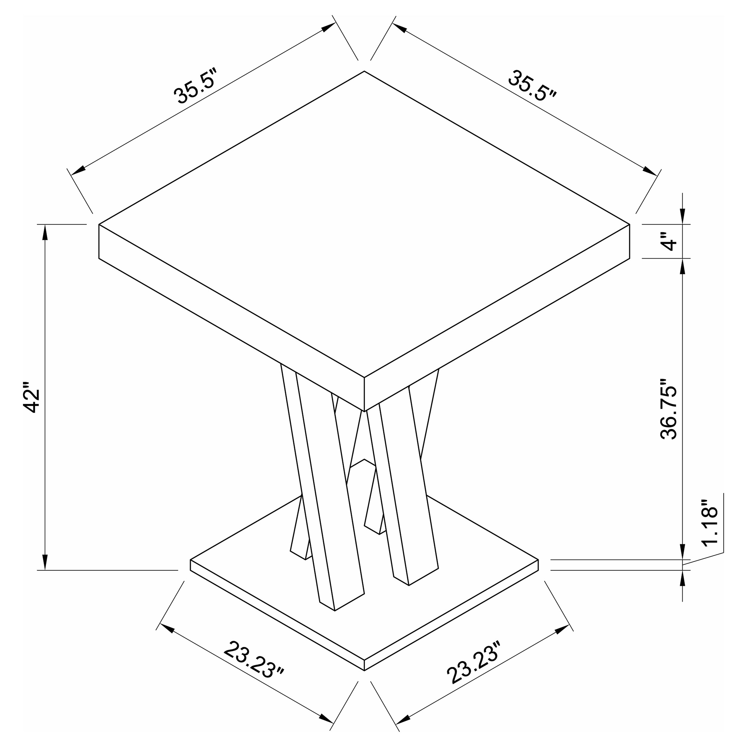This square pub height table blends bold geometry with contemporary ease, offering a chic solution for casual dining. The sleek top and architectural crisscross pedestal base create visual intrigue, all finished in a rich cappuccino tone. Built from engineered wood with a scratch-resistant laminate veneer, it brings lasting durability and modern appeal to kitchen corners, dining nooks, or small-space entertaining.