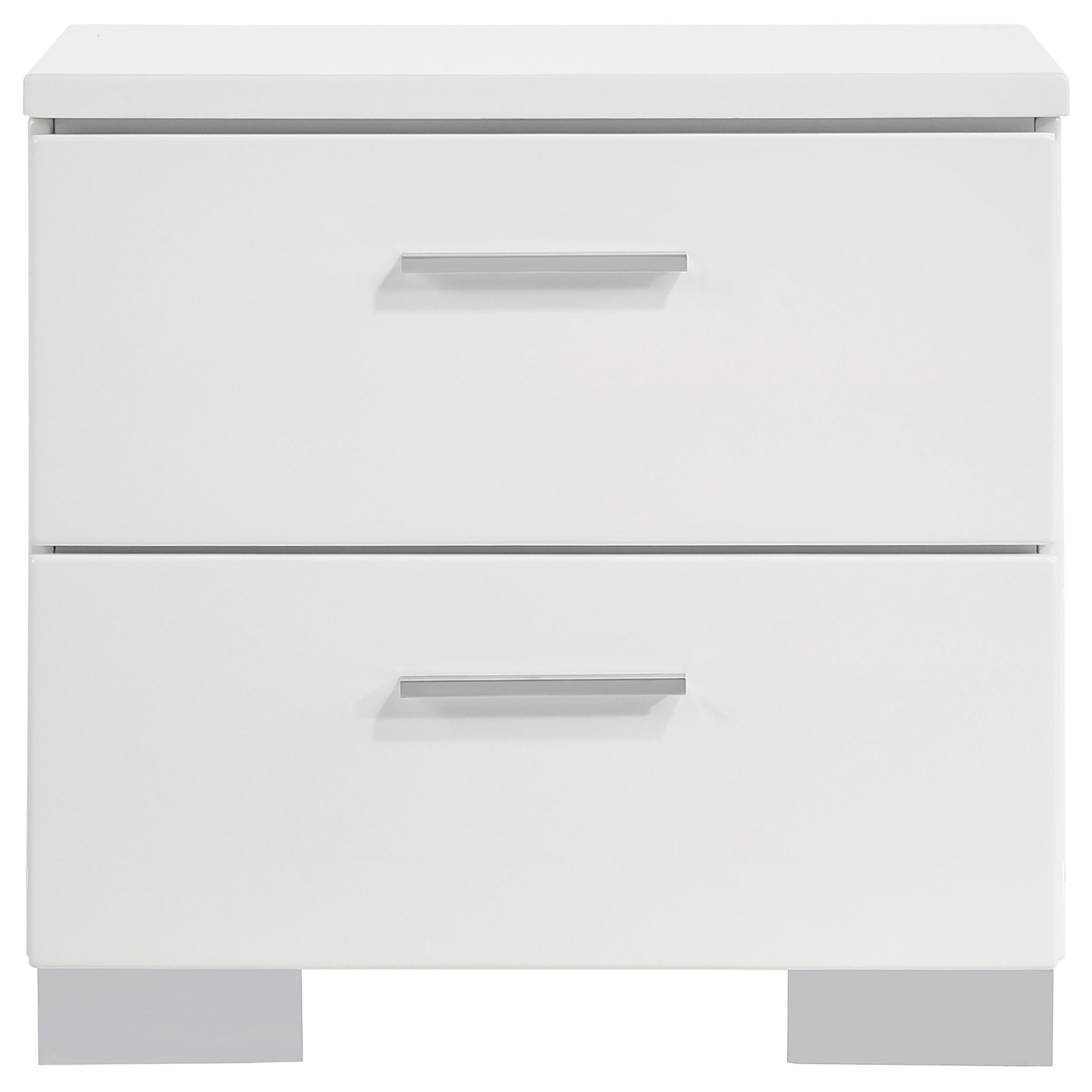 Sleek lines and integrated lighting define this contemporary bedroom set. The bed showcases a white high gloss headboard with built-in blue LED lighting, activated by a touch switch, and a faux leather upholstered frame for added refinement. Paired with a coordinating dresser mirror featuring perimeter LED lights and a touch sensor, the set balances utility with clean, modern design. Chrome hardware and smooth-glide drawers complete the polished look.