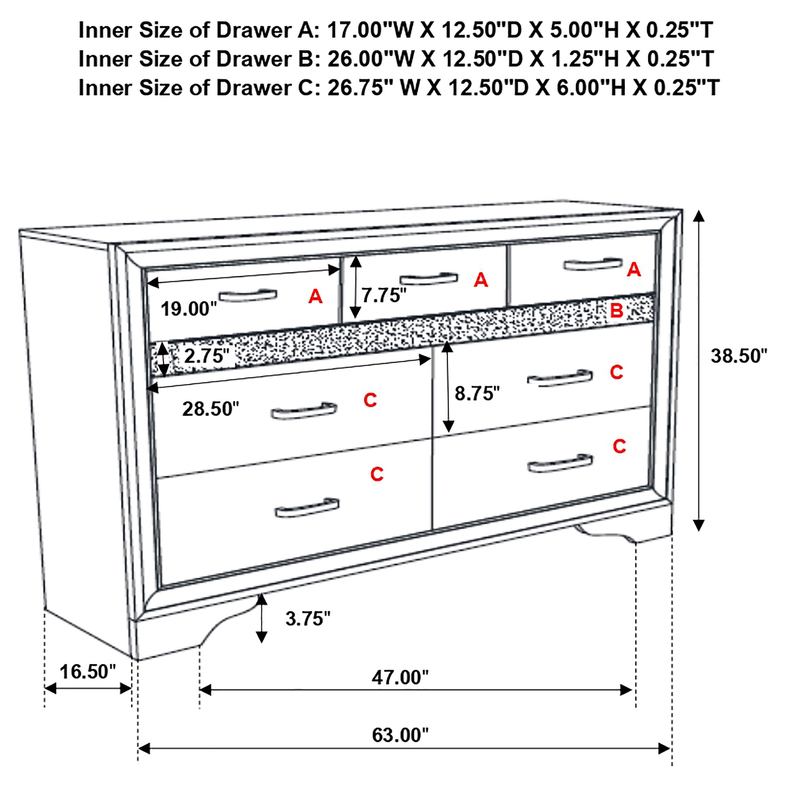 • Dresser includes seven drawers with framed mirror to match