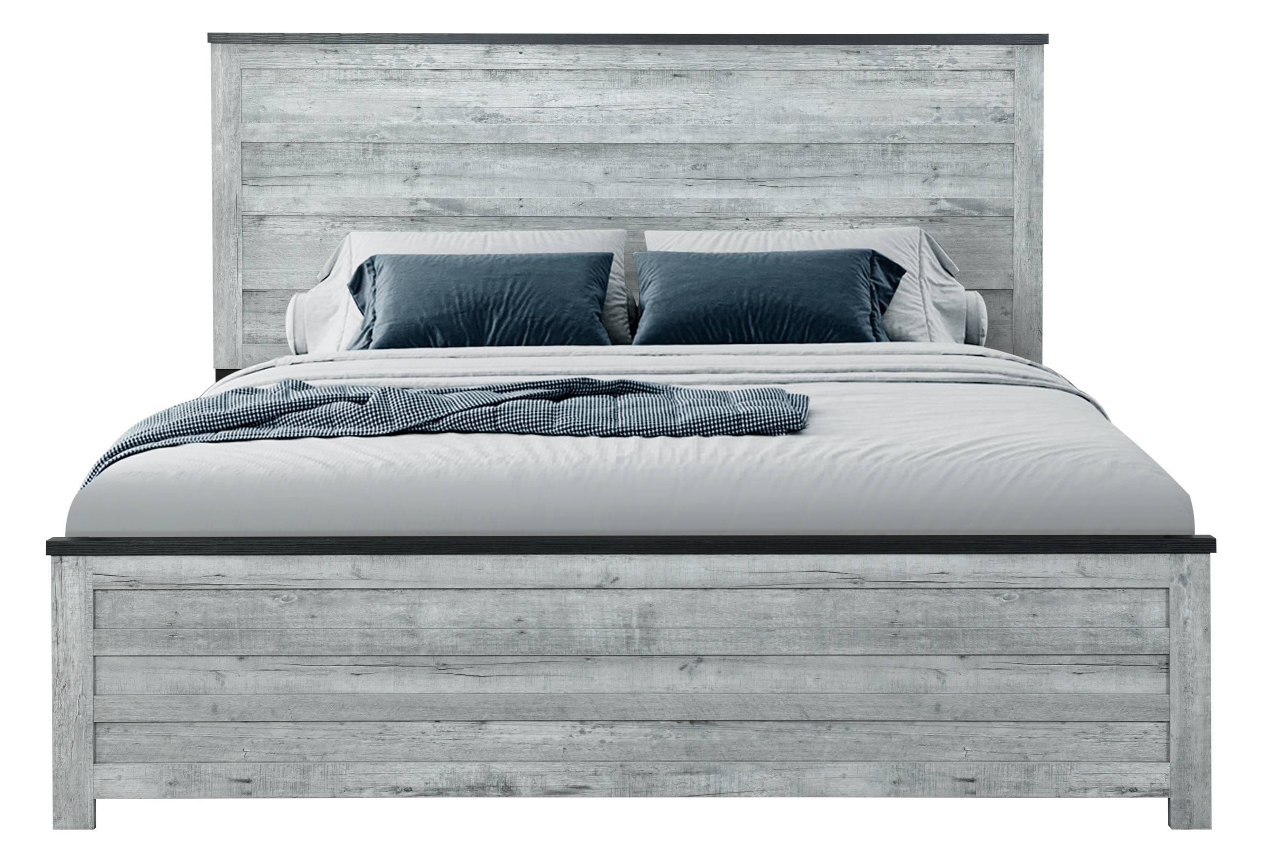 Indulge in the raw beauty and timeless appeal of the Ozark Bedroom Collection by Global Furniture USA. Each piece in this captivating ensemble is finished in a rustic grey wash that exudes warmth and character, while the contrasting black tops on all case goods add a striking visual balance. The collection is thoughtfully designed to bring a sense of rustic sophistication to your sanctuary. The bed boasts a plank design on the headboard and footboard, lending a handcrafted look to your sleeping space. Complementing this centerpiece, the dresser, nightstand, and chest all feature rustic hardware, enhancing the natural charm and ensuring durability. The Ozark Bedroom Collection is the perfect blend of rustic allure and contemporary craftsmanship, making it ideal for anyone looking to infuse their bedroom with a touch of elegance and comfort.