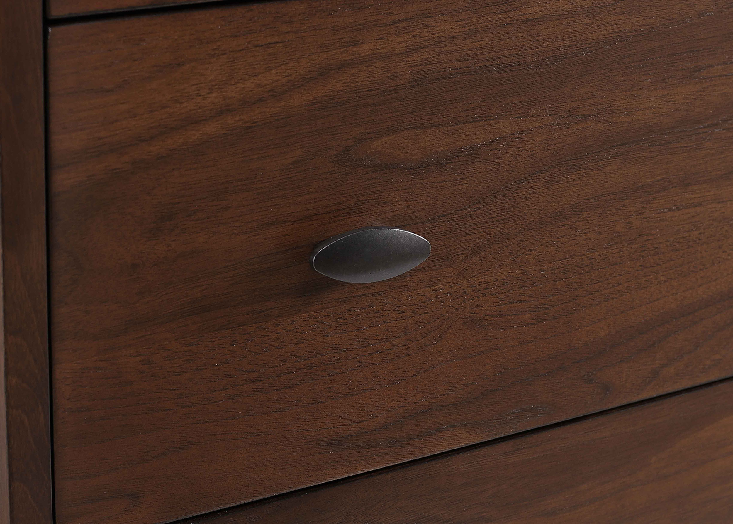 Transform your bedroom into the ultimate retreat with this mid-century modern bedroom set. Expertly crafted from pine, engineered wood, and walnut veneer, the set includes a bed, nightstand, dresser, mirror, and optional chest for a cohesive look. Rounded edges, tapered legs, and square tufting lend a retro-inspired flair, while felt-lined top drawers in case pieces and dual USB ports in nightstand add practical convenience. This collection combines style and functionality for a truly luxurious bedroom experience.