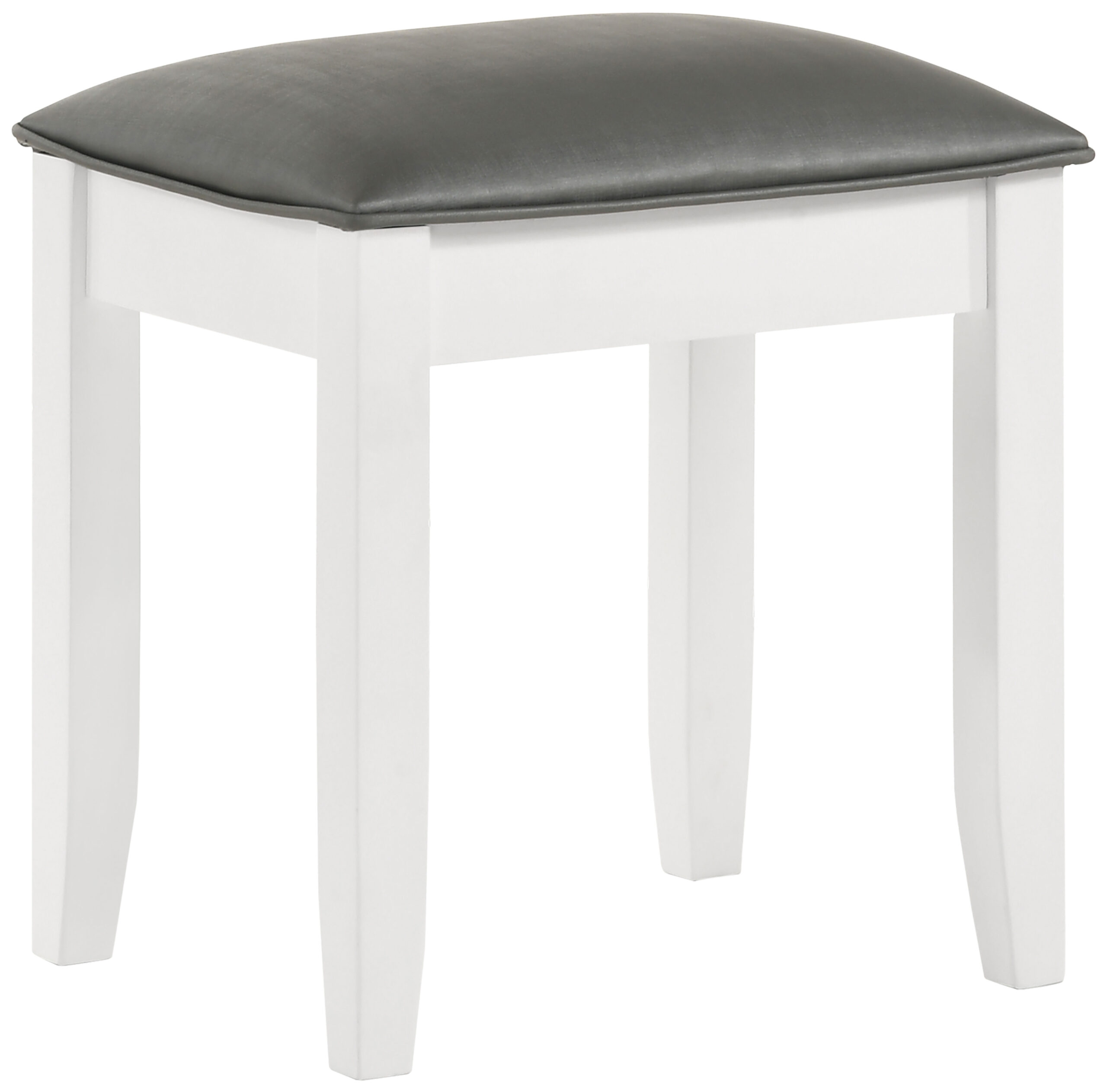 Enhance your vanity space with this sleek and versatile vanity stool. Featuring a glossy white finish, this stool exudes modern elegance while complementing contemporary interiors. The cushioned seat is upholstered in smooth faux leather, offering both comfort and durability. Supported by sturdy tapered legs, this stool is designed for stability and everyday use. Whether paired with a vanity or used as an accent piece, it brings style and function to any space.