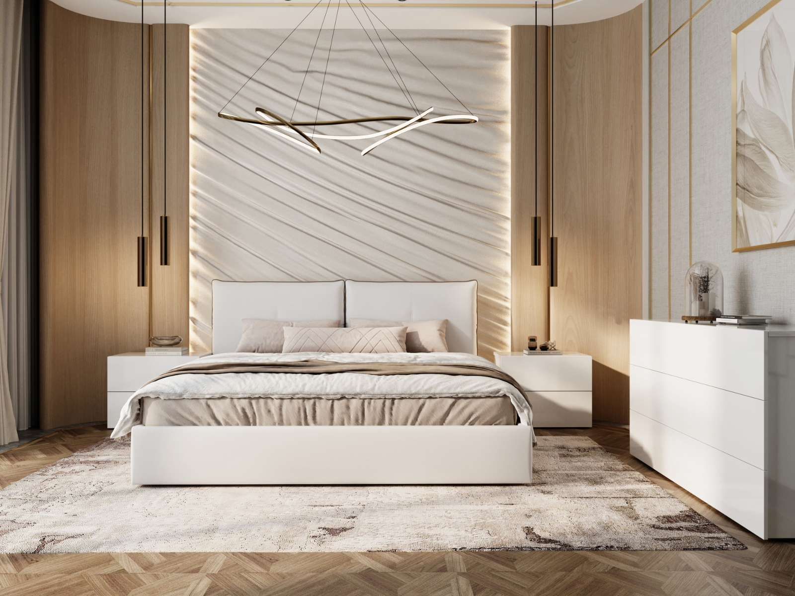 The Aria queen storage bed in white pu leather by casabianca home provides both versatile and modern style that can easily be integrated into any bedroom decor in your home. This Aria queen storage bed features a unique gas hydraulic system that easily lifts your mattress up and out of the way giving you access to the hidden storage underneath your bed. Our Casabianca Home Aria queen storage bed is manufactured using quality materials that will last for many years to come and is backed by our 1 Year limited warranty against manufacturer defects. Size: 70″ W x 93″ D x 42″ H