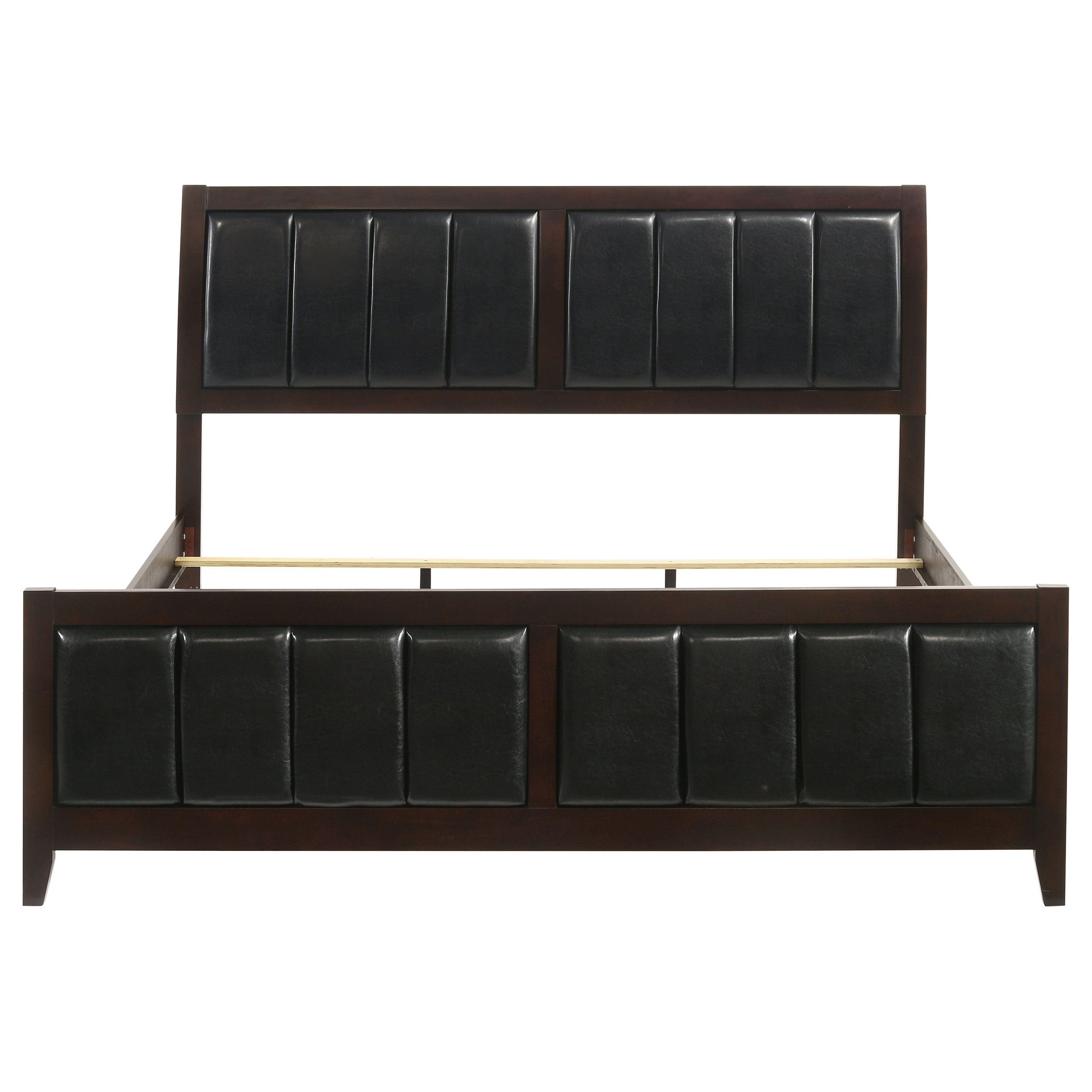 Get a taste of mid-century and retro personality. With a bold, exciting aesthetic, this bed offers a compelling focus in any room. Its divided headline features padded leatherette sections. A cappuccino finish creates a dynamic effect. Create an eye-catching ensemble with this bed at its center.