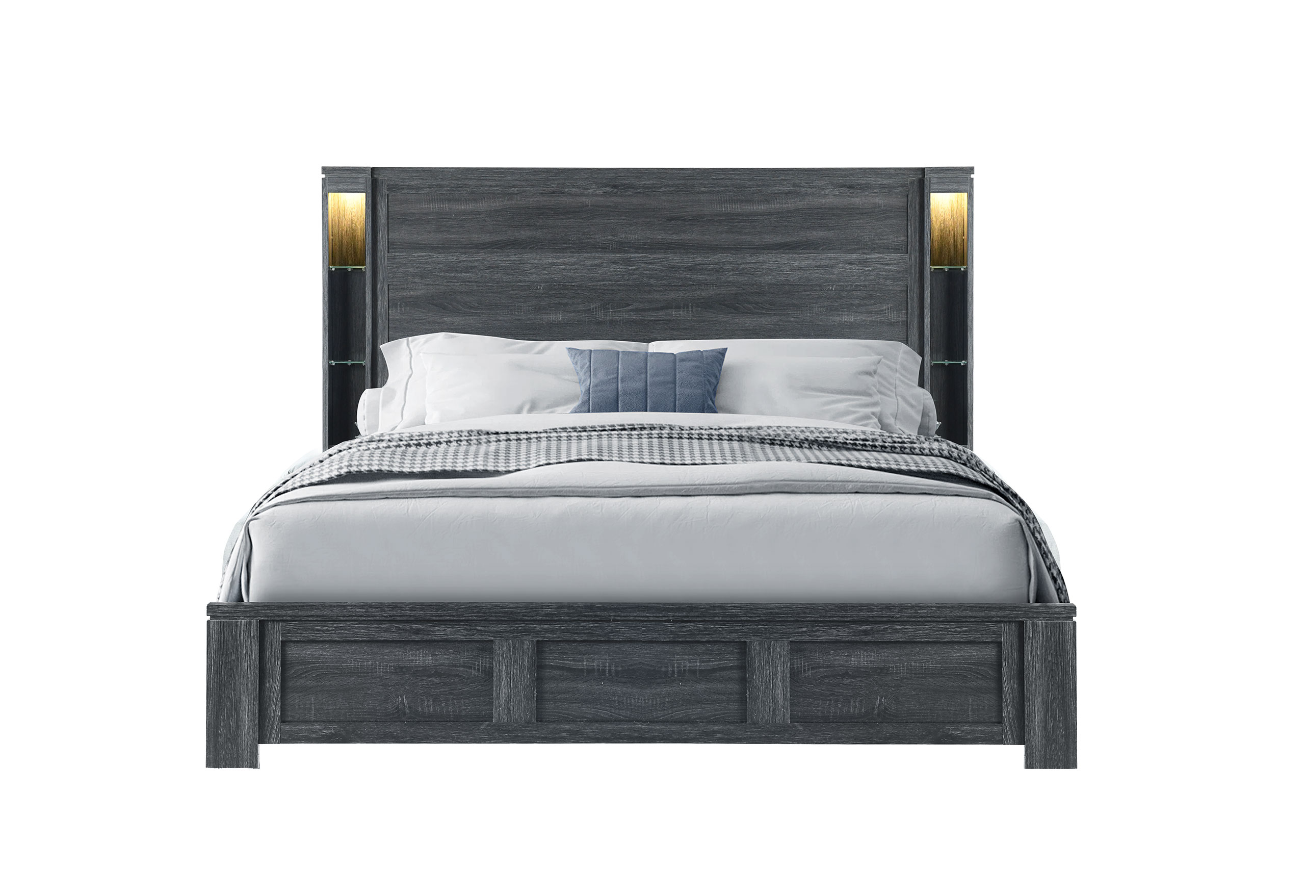 Introducing the Cypress bedroom group by Global Furniture USA, a captivating collection that brings style and functionality to your sleep space! Embrace modern elegance with the stunning grey oak finish that exudes contemporary charm, while the matte handles add a touch of sophistication to each case piece. The headboard is not just a headboard – it’s a multitasking marvel! Revel in its built-in accent lighting and convenient storage, perfect for keeping bedtime essentials within reach.