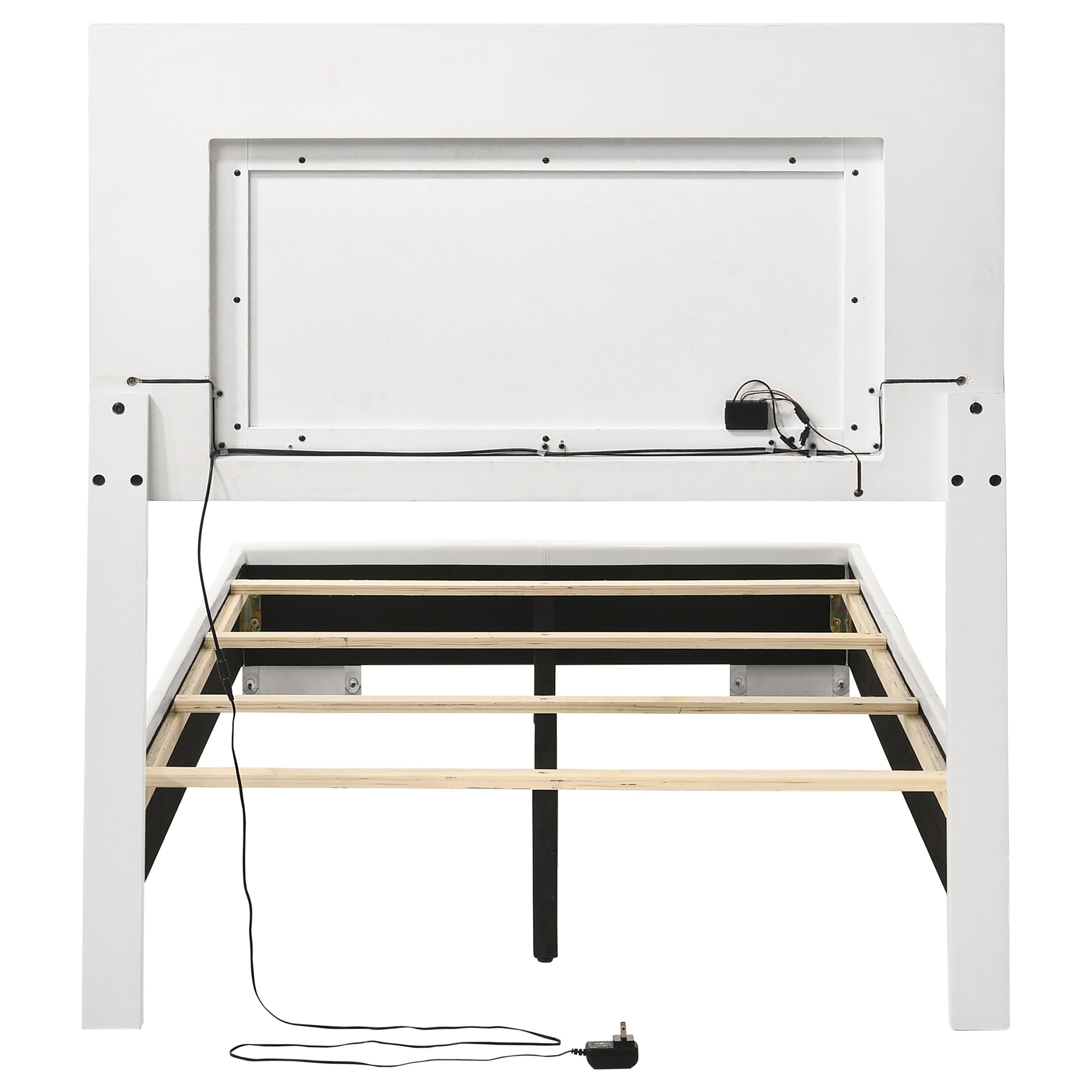 - White high gloss headboard frame with built-in blue LED lighting strip