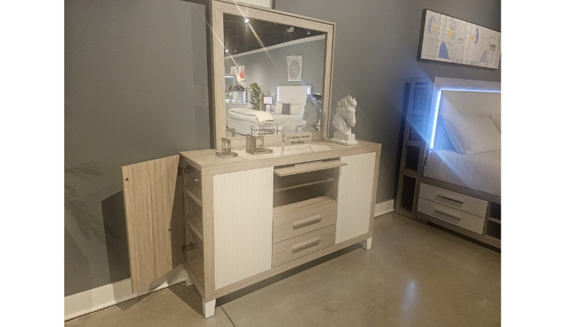Carter dresser in taupe matte.