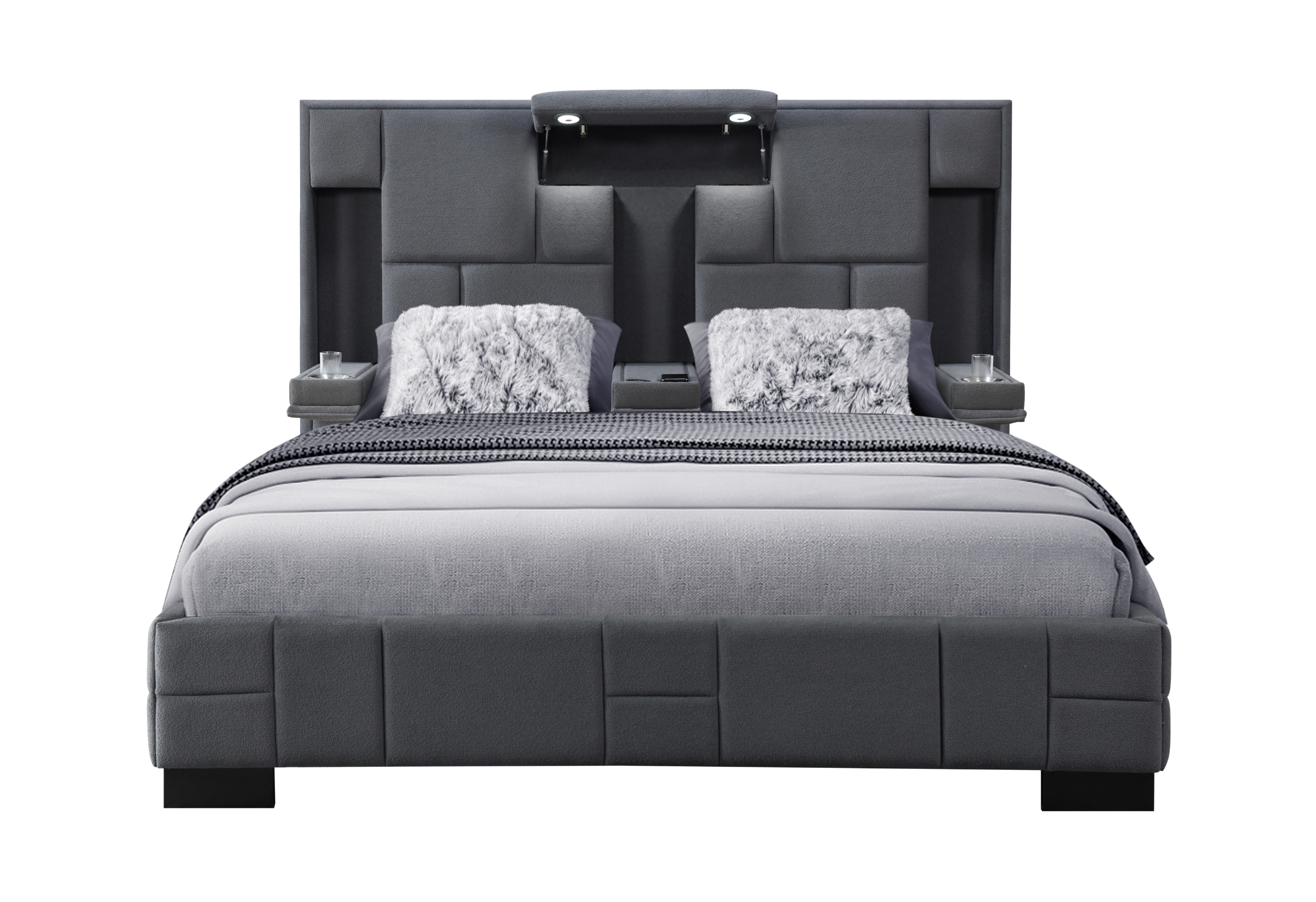 Elevate your bedroom with the sophisticated Oscar Bed by Global Furniture USA, available in a refined palette of dark grey, light grey, and navy blue. This unique bed is the epitome of modern luxury and convenience, designed to cater to the needs of tech-savvy individuals who appreciate comfort and style.