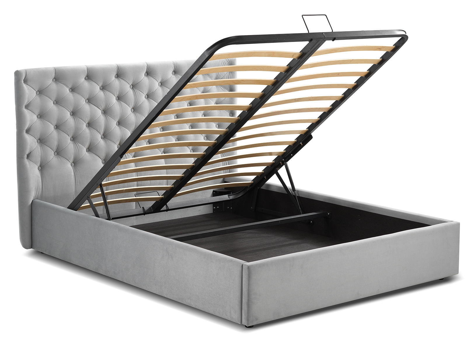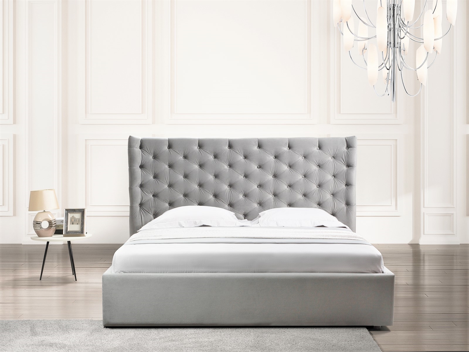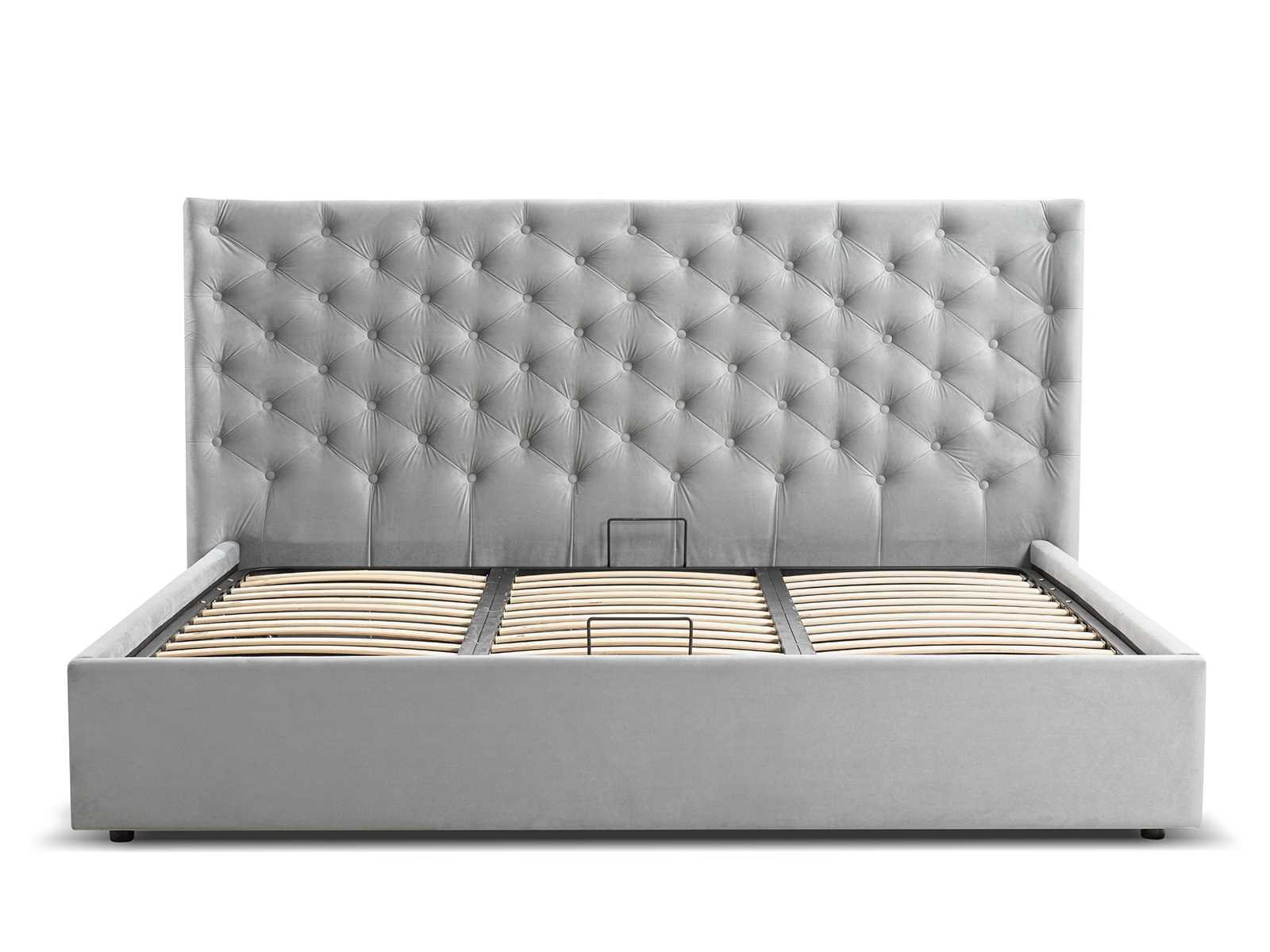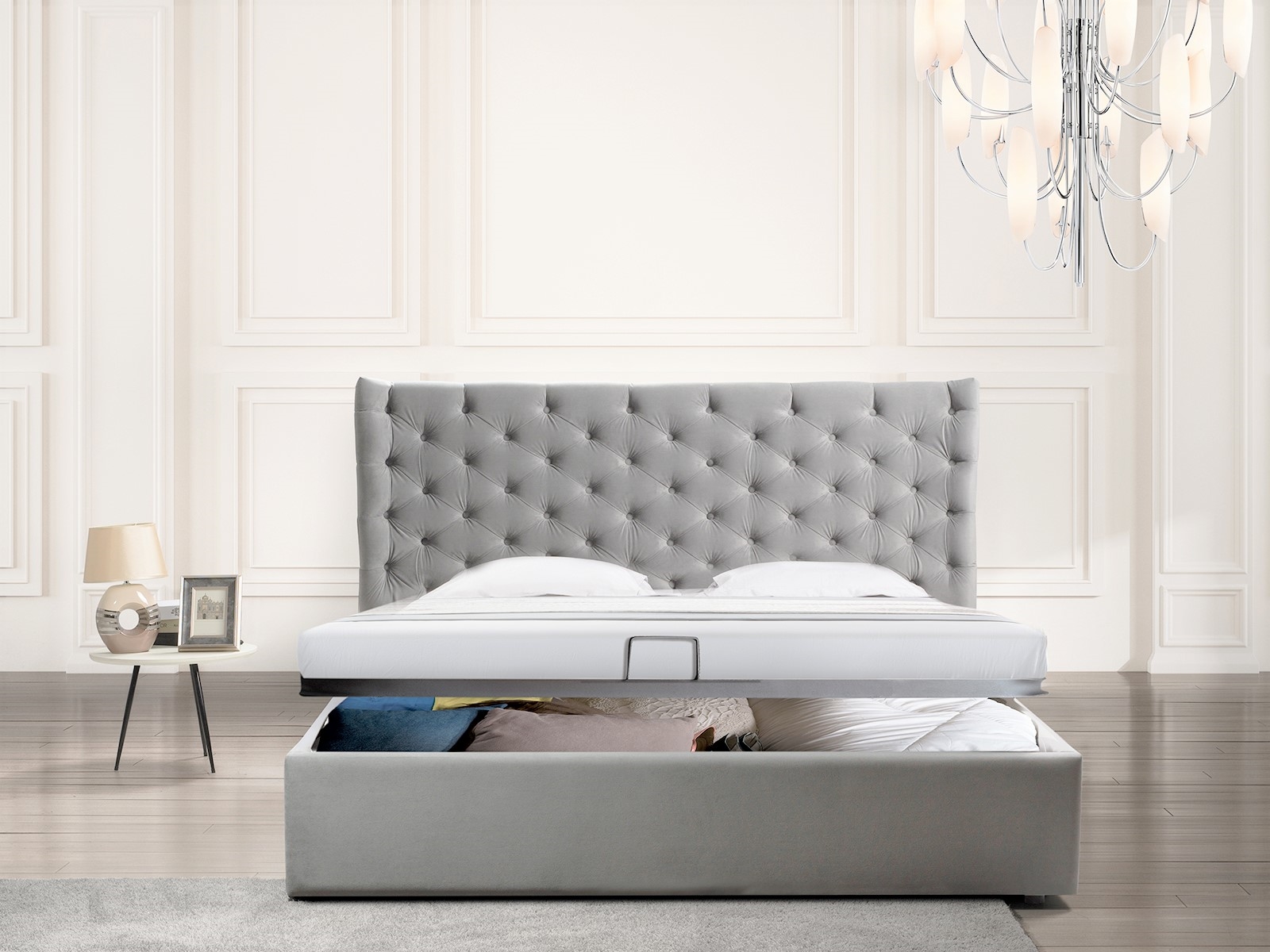 The Parker queen storage bed in gray velvet fabric by casabianca home provides both versatile and modern style that can easily be integrated into any bedroom decor in your home. This Parker queen storage bed features a unique gas hydraulic system that easily lifts your mattress up and out of the way giving you access to the hidden storage underneath your bed. Our Casabianca Home Parker queen storage bed is manufactured using quality materials that will last for many years to come and is backed by our 1 Year limited warranty against manufacturer defects. Size: 72″ W x 90″ D x 46″ H