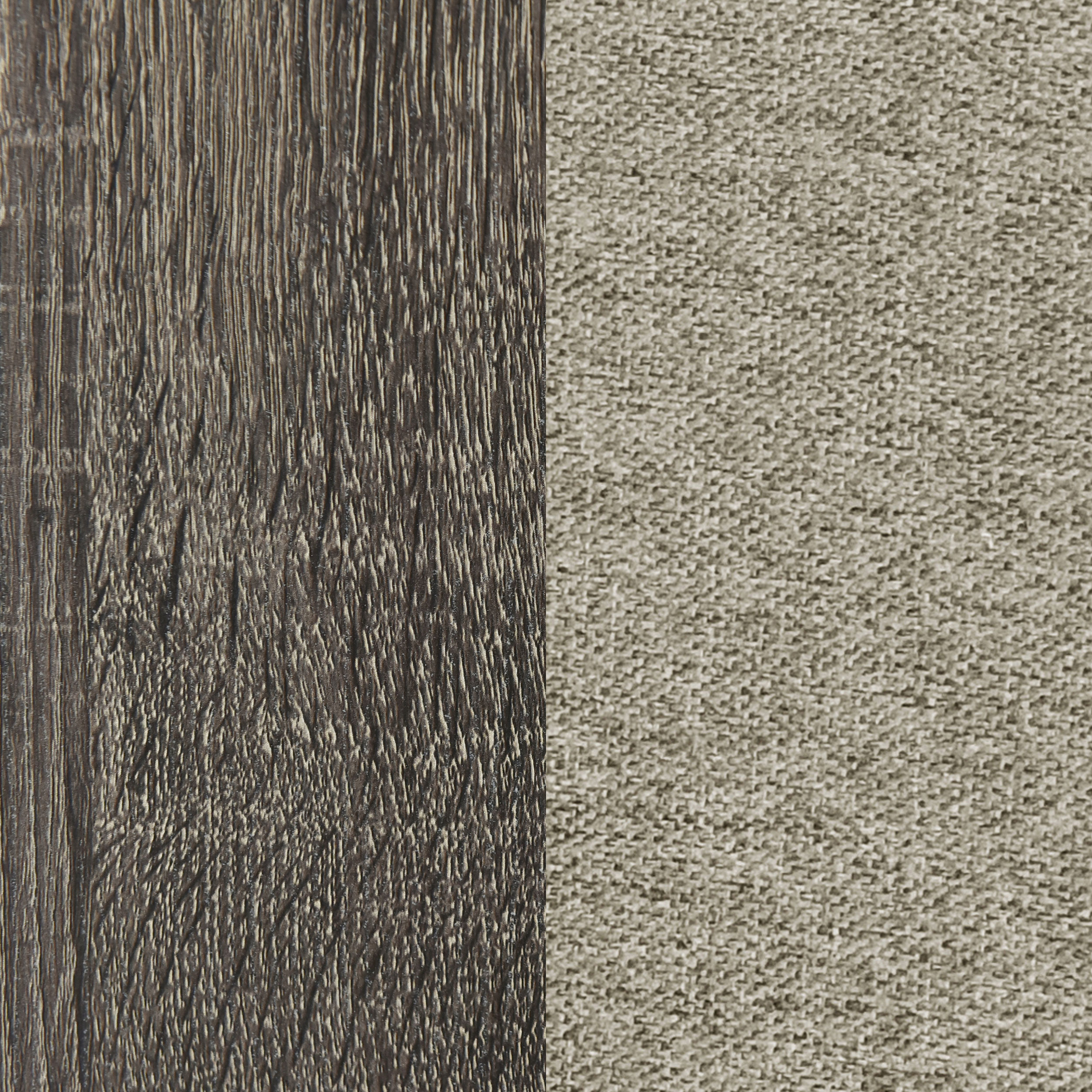Introduce refined style in an approachable bedroom ensemble with this transitional wooden bed. With an upholstered headboard, it delivers impeccable comfort for lounging and relaxation. A brown oak wood grain finish pairs with laminate, delivering the perfect blend of style and durability. Tan fabric pairs with foam cushioning, delivering a complementary color tone that remains neutral in your bedroom. The bed features a tall headboard paired with a low footboard, creating an open, airy profile.