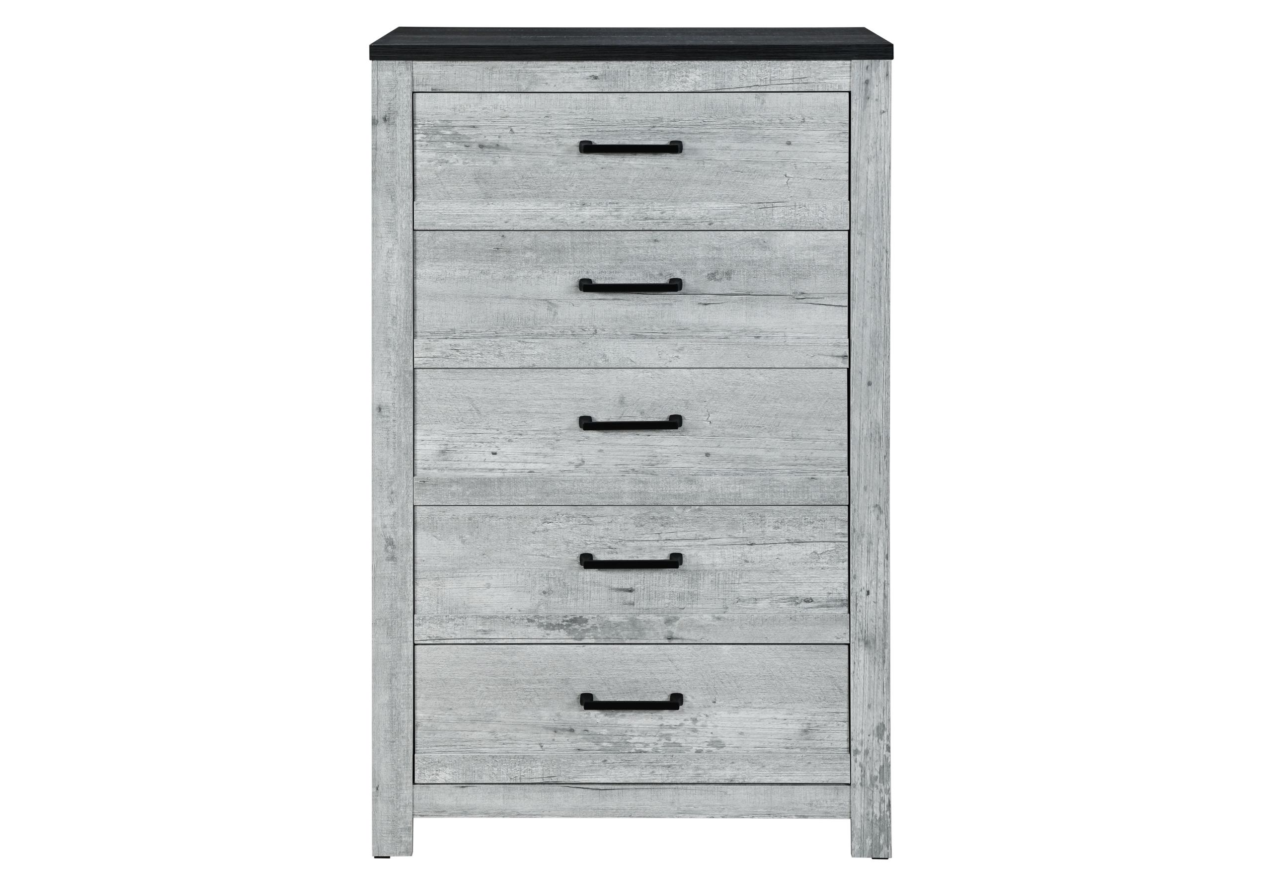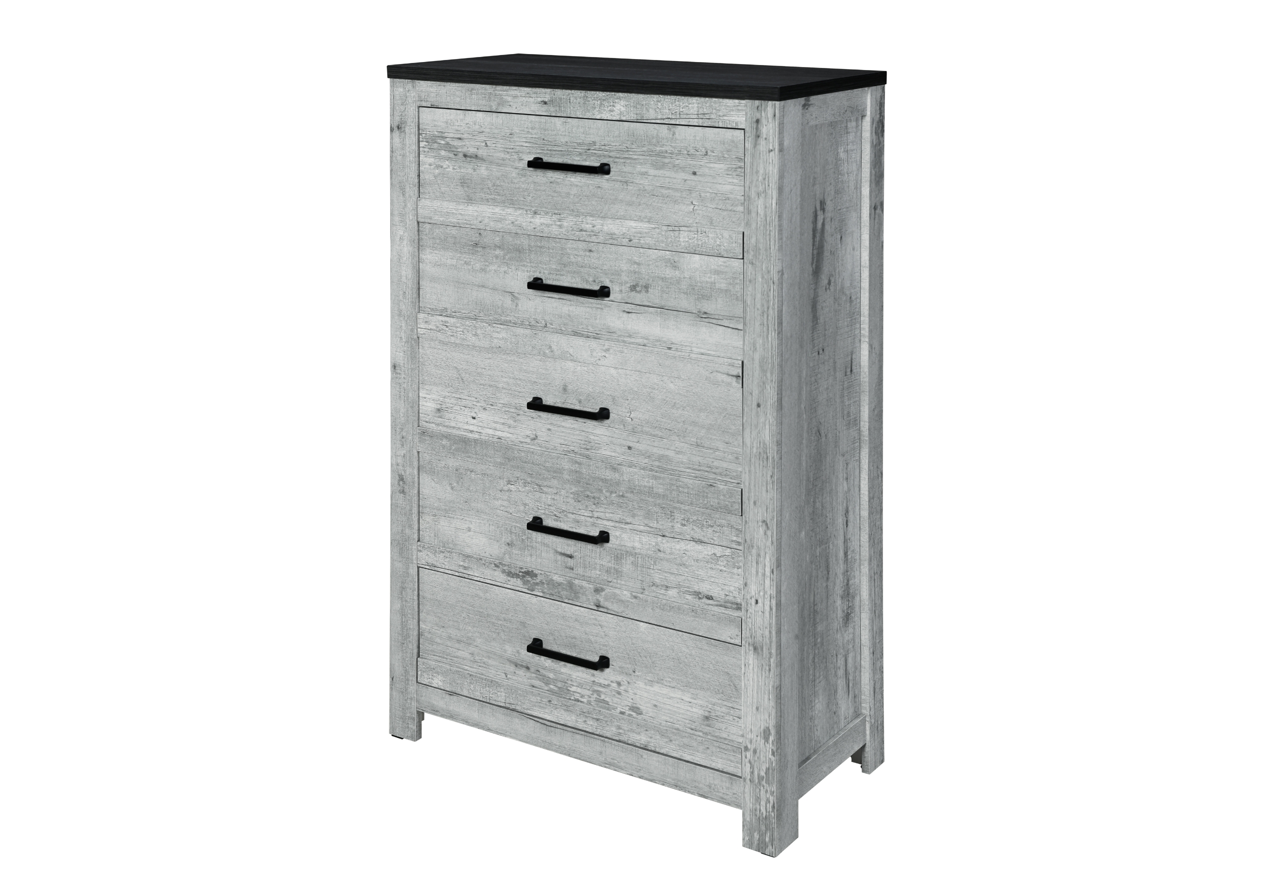 The Ozark Chest by Global Furniture USA is a testament to rustic beauty and functionality. With a generous storage capacity, this chest is finished in a rustic grey wash and topped with a contrasting black surface. The rustic hardware on each drawer complements the overall design, offering a cohesive look that’s both rugged and refined.