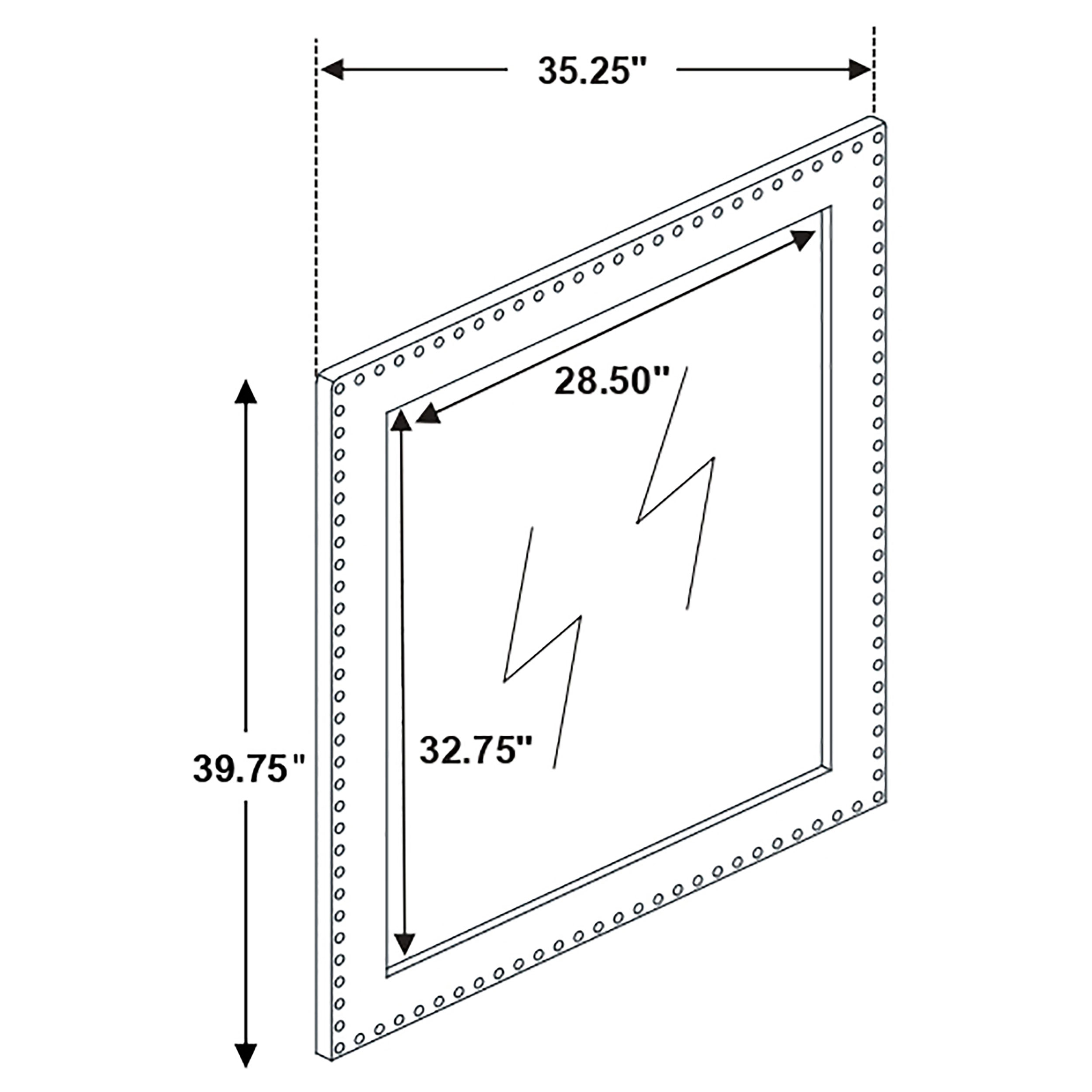 - Clean rectangular profile trimmed with chrome nailhead accents