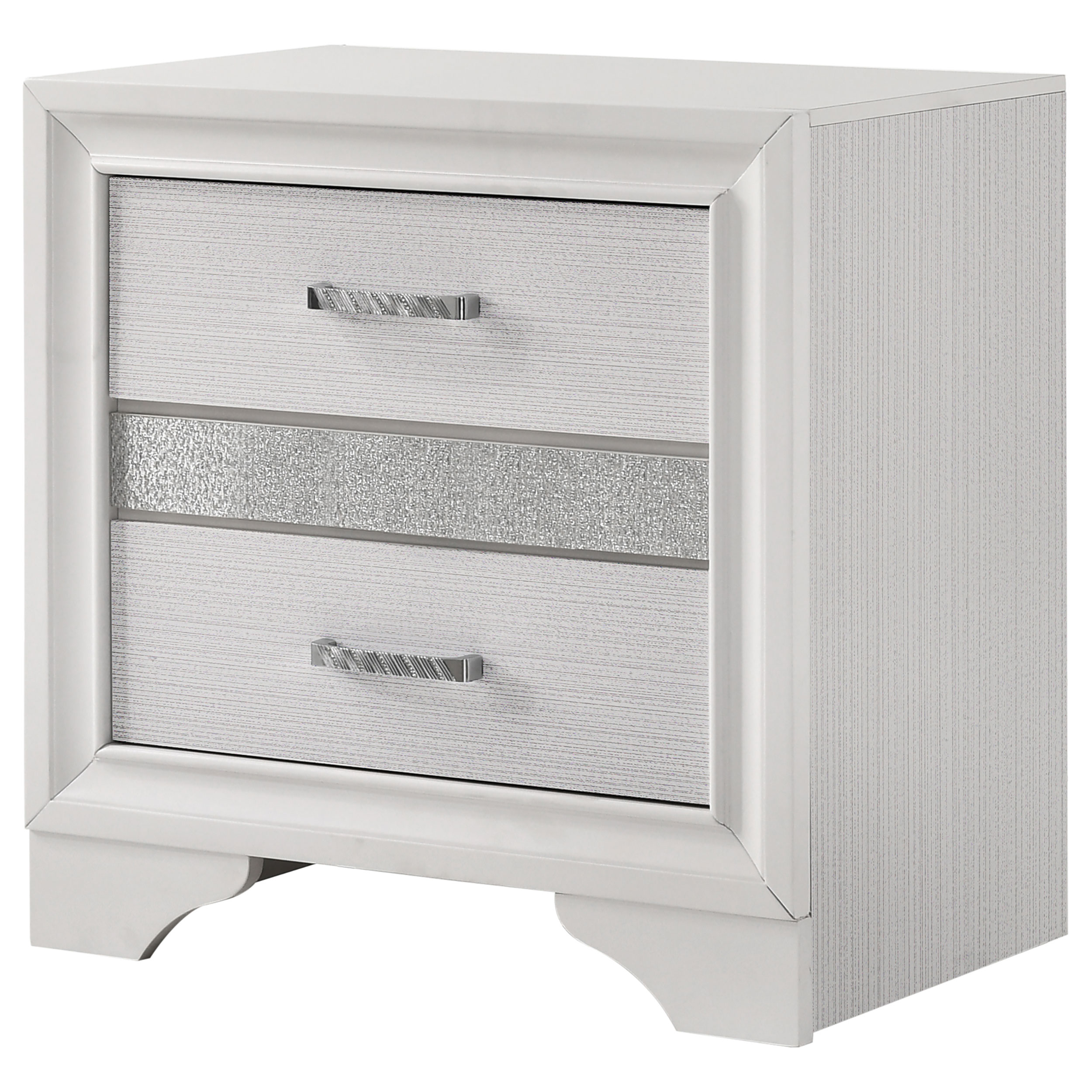 A surprisingly elegant twist embellishes classic charm. Make this nightstand a staple in a transitional bedroom. A shapely base section offers sensual curves that contrast with a linear silhouette. Metal extension glides ensure smooth drawer operation. Select from gorgeous finishes.
