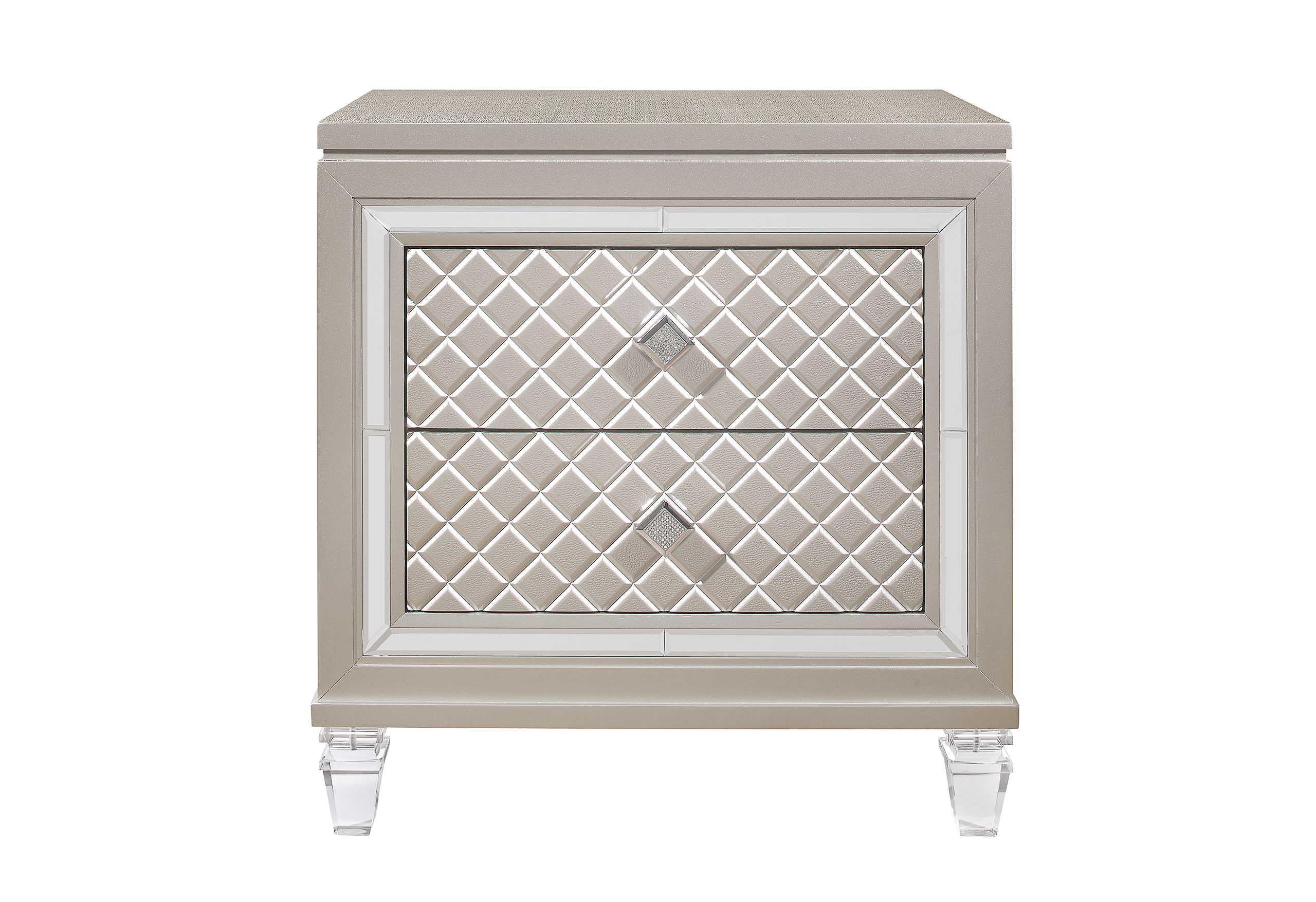 Old Hollywood Glam styling with all of the modern day features that today’s consumer has come to expect. From the eye-catching platinum metallic finish, to the fancy acrylic legs and ambient LED lighting, the Paris bedroom collection is a true show stopper.