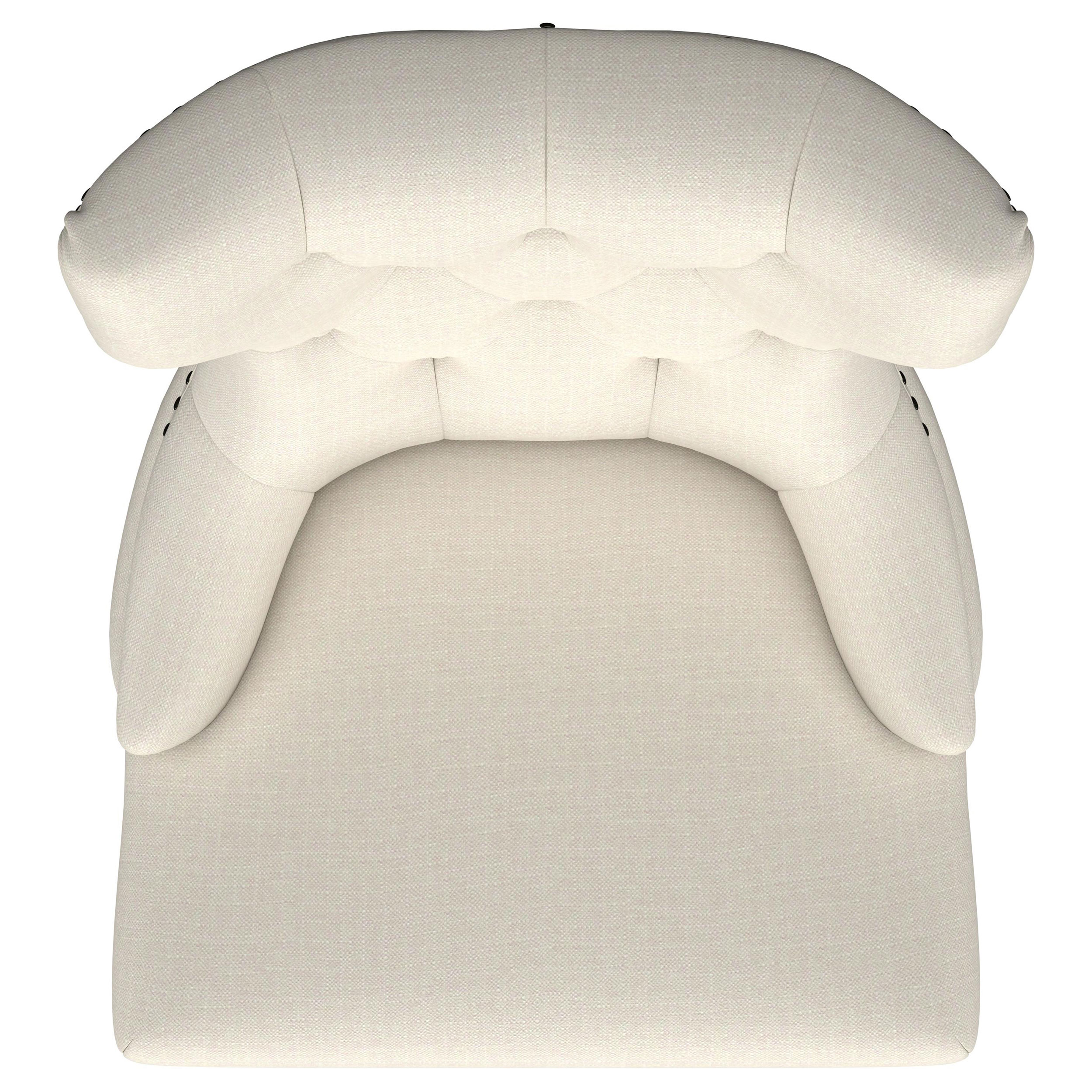 - Perfect for transitional spaces, modern design softened with beige upholstery and tufting on seat back