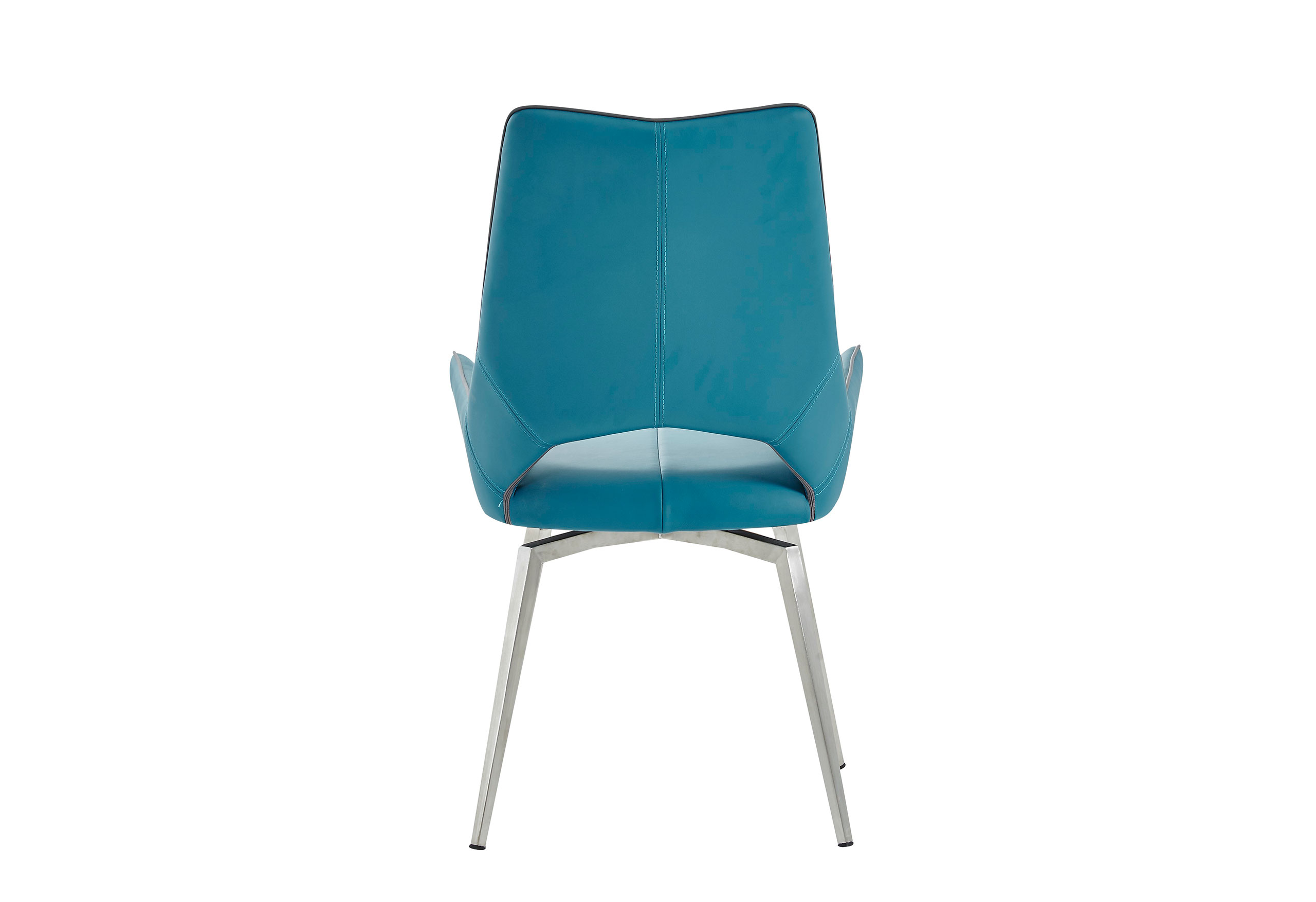 Cradle your family and friends in comfort with this charming contemporary style dining chair. The bucket style seats are designed to provide maximum relaxation and the bright turquoise faux leather (PU) tones of this chair make it an easy fit for your existing kitchen/breakfast room decor. Additional features of this seating include open back design, welted detailing along cushions along with sturdy metallic silver base which combine to create an eye-catching and comfy look and feel. Quality craftsmanship in every facet ensures durability and long-lasting wear. Dynamic and delightful, this chair will provide years of comfortable enjoyment and is an excellent choice in kitchen and dining furnishings.