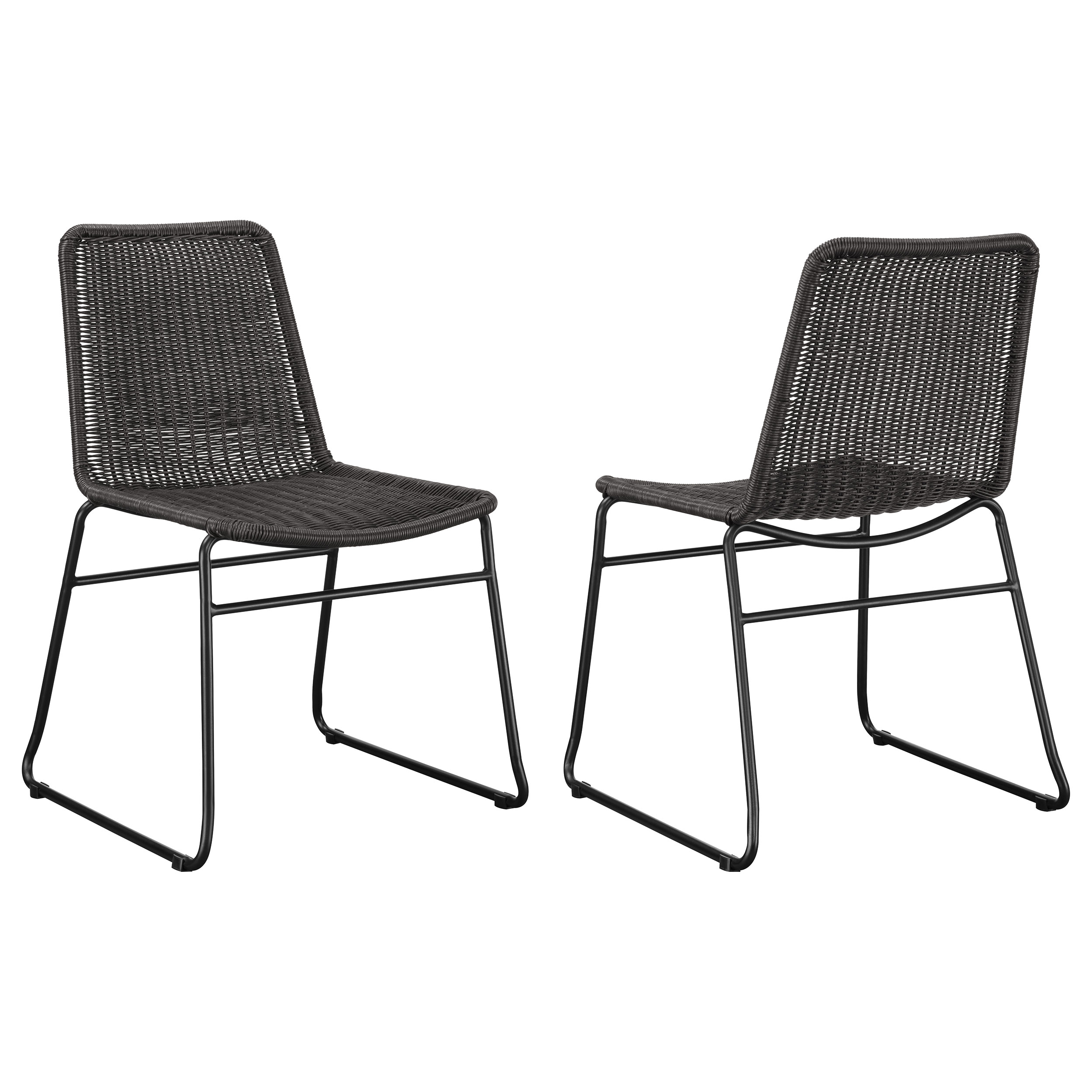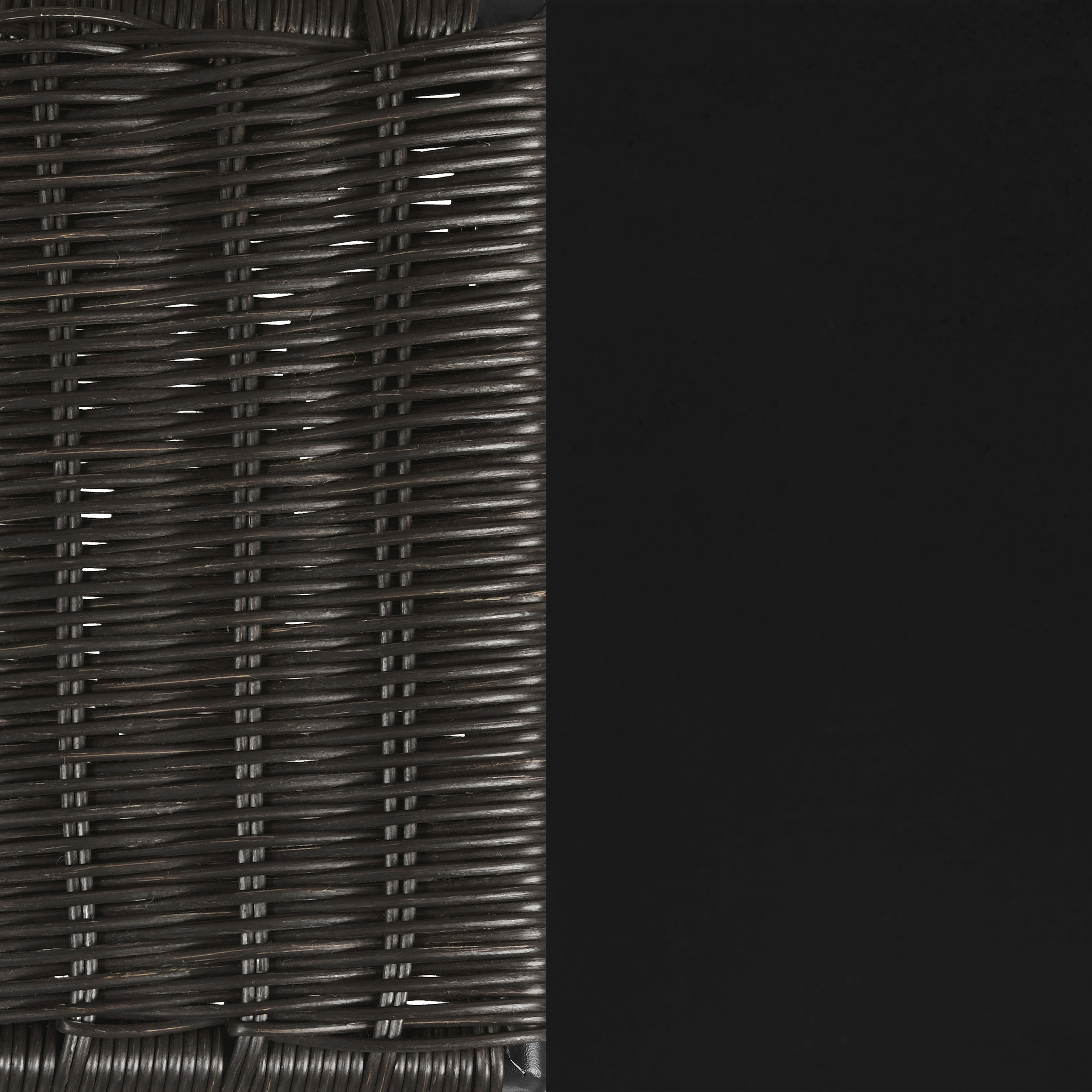 Place this transitional dining chair in a space for a hint of texture. Designed with a brown handwoven faux rattan across the seat, this charming chair offers a natural, boho-inspired vibe. Mounted on a black metal frame that offers all the support one needs, this lovely dining chair also offers vintage vibes with a flared base that lends an open, airy look. The sandy black slim frame also creates bold lines. Place this rattan-wrapped dining chair at a mid-century style dining table or allow it to grace a home office for extra guest seating.