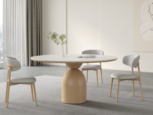 - Rounded posts and leg corners soften the frame while enhancing stability