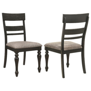 - Dining side chair features a sculpted slat back with a gently curved top rail