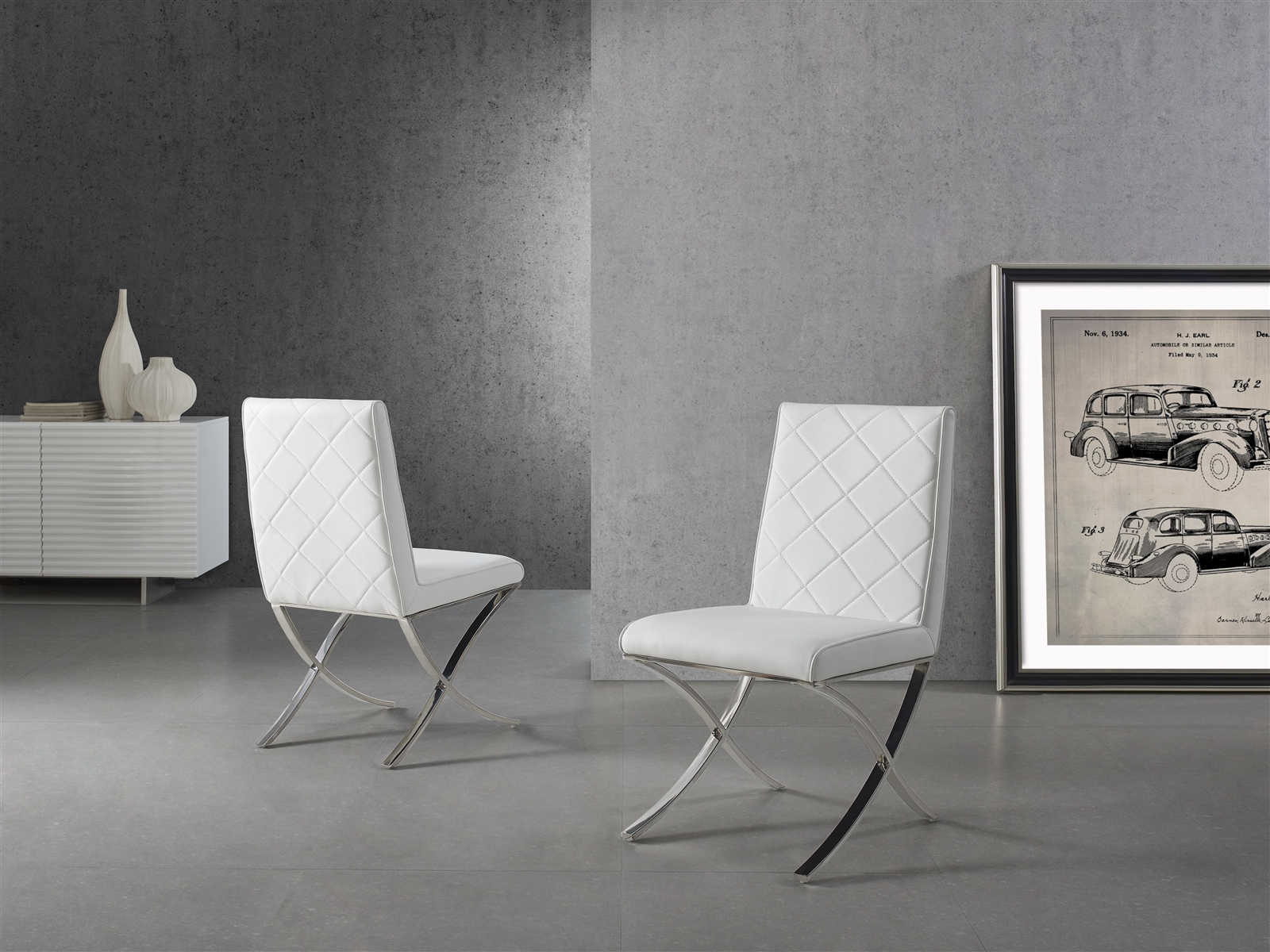 - Loft Set of 2 dining chair in gray pu leather.