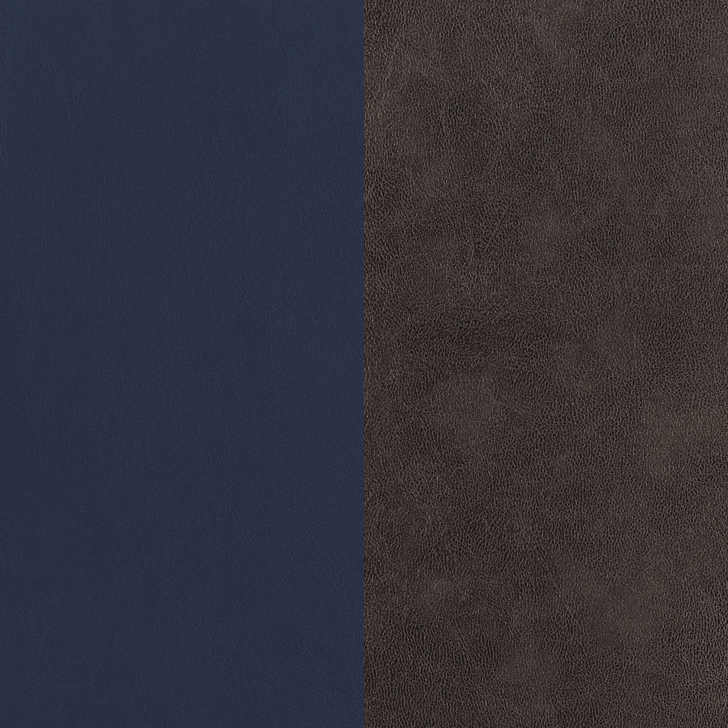 - Upholstered in smooth blue leatherette with a diamond-quilted brown back panel