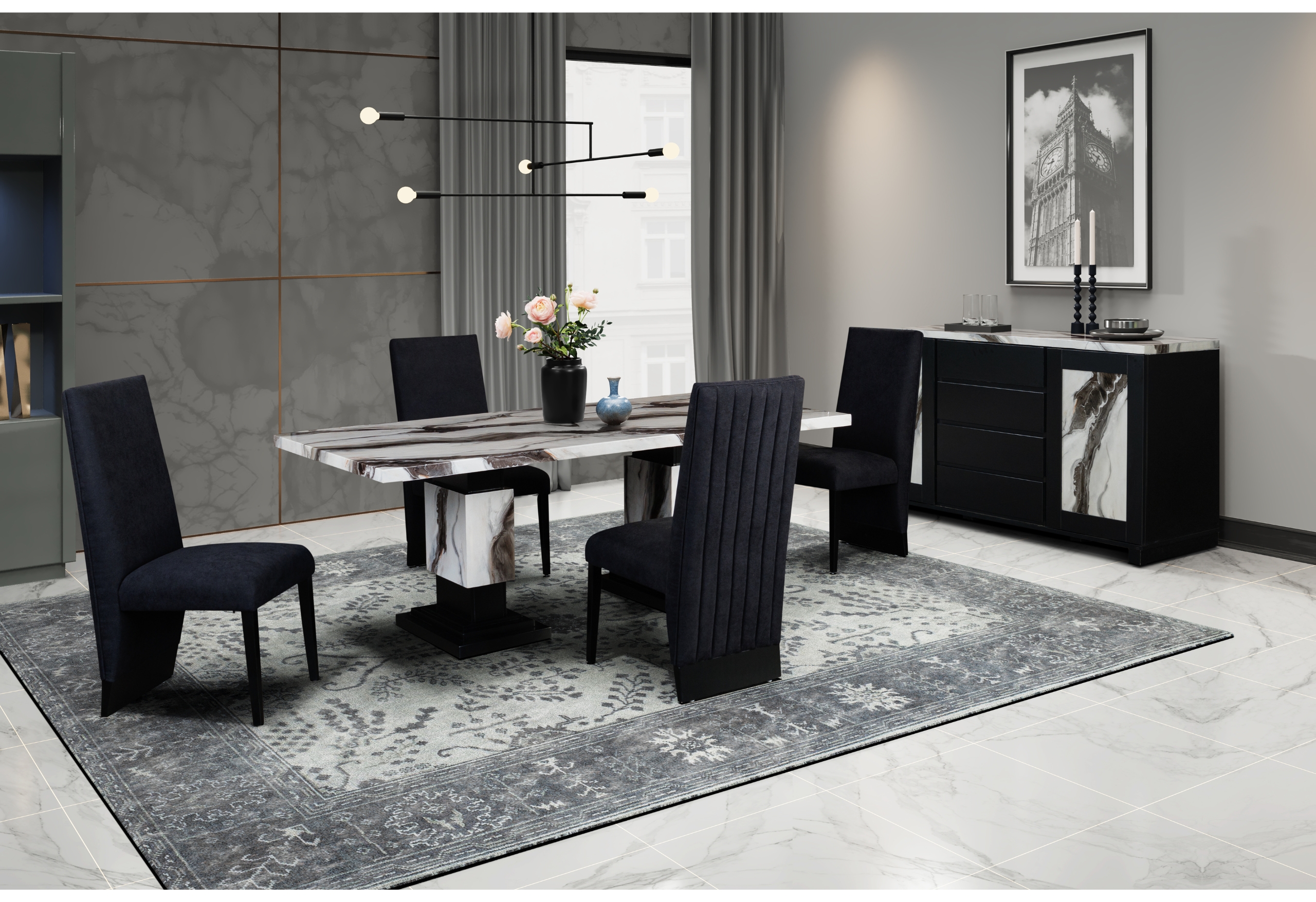 The focal point of this set is the table, featuring a faux marble top that exudes timeless luxury. Its sleek black base with faux marble accents adds a touch of modernity and complements any interior décor effortlessly. Crafted with meticulous attention to detail, the D12 table offers a sturdy construction that ensures years of reliable use.