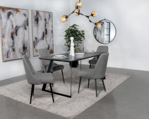 - Dark grey upholstery over foam cushioning creates ample comfort and stylish contrast and depth