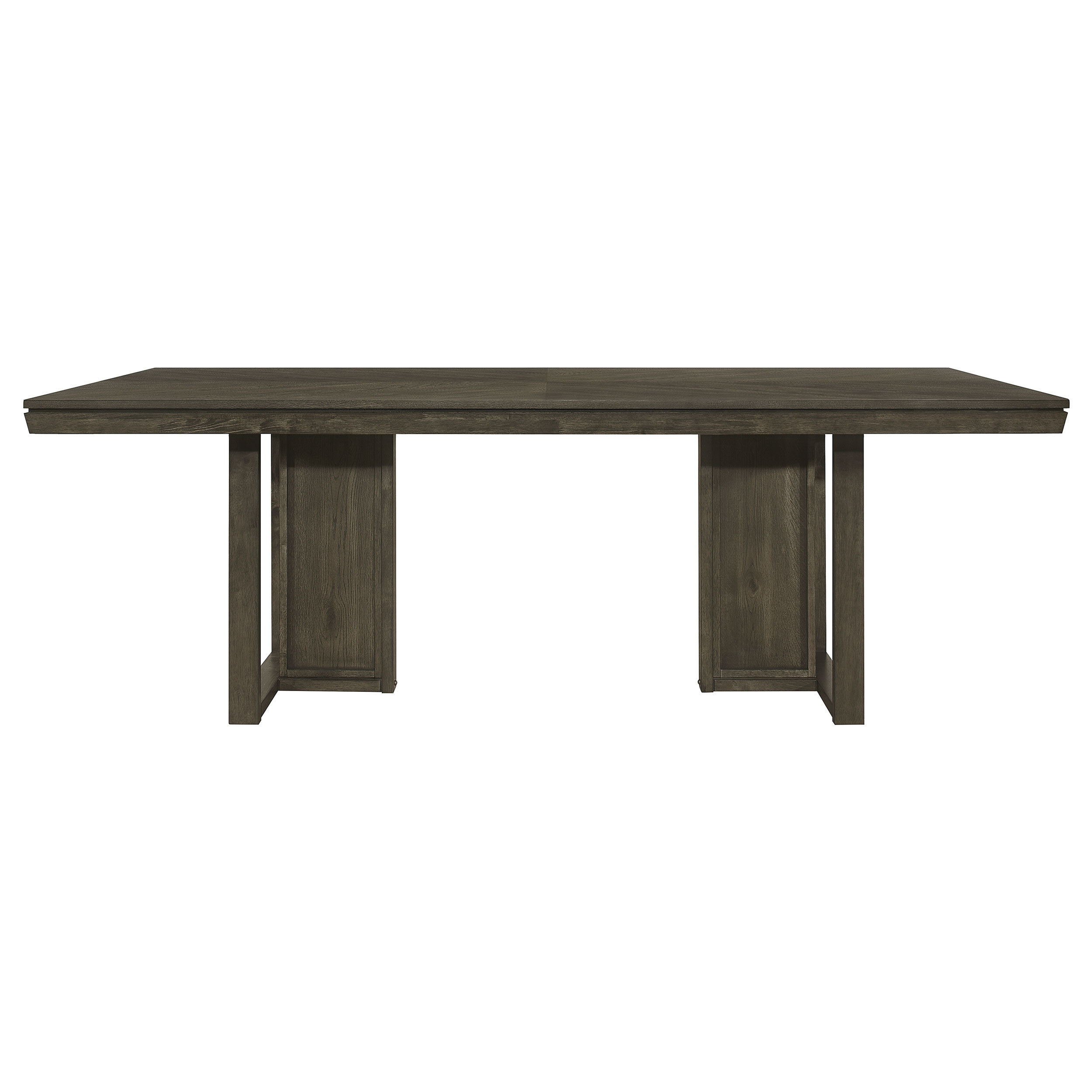 - Upgrade your dining area with this chic transitional dining set, featuring a sleek dark grey finish and subtle chevron pattern on the table top