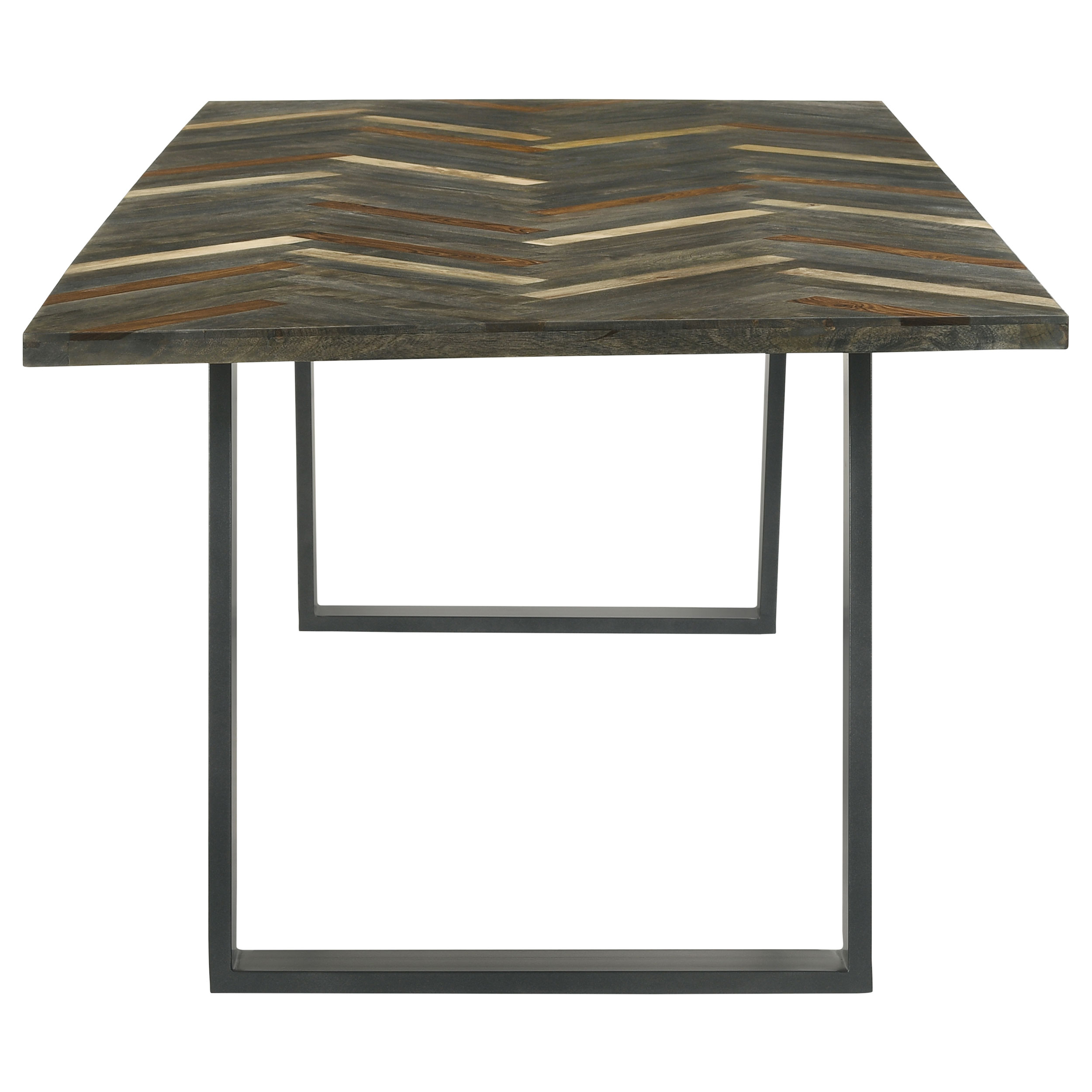 - Retro charm is on full display in a five-piece casual dining set with a rectangular wood and iron dining table, four side chairs and bench with channeled tufting upholstery