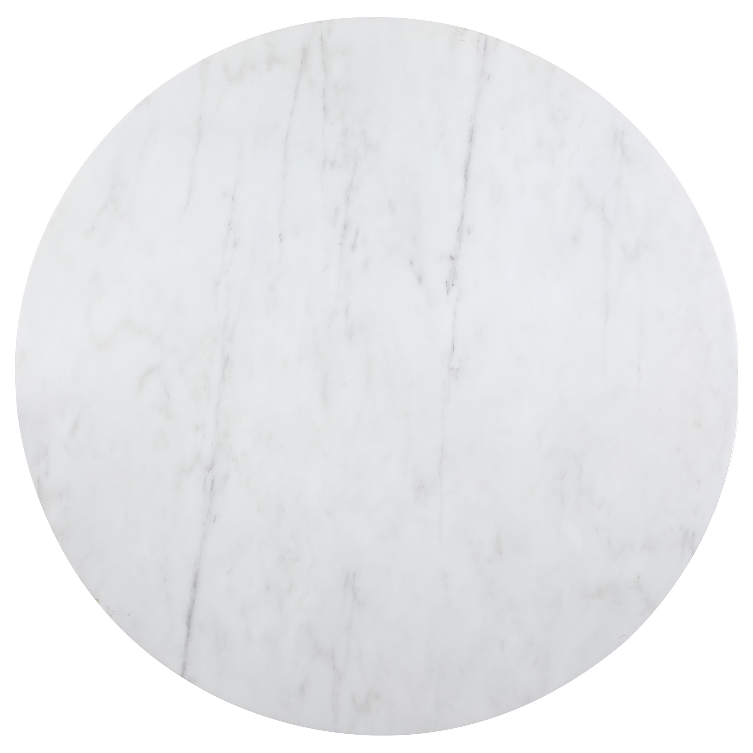 - Round table top crafted from luxurious white marble that brings subtle texture and dimension