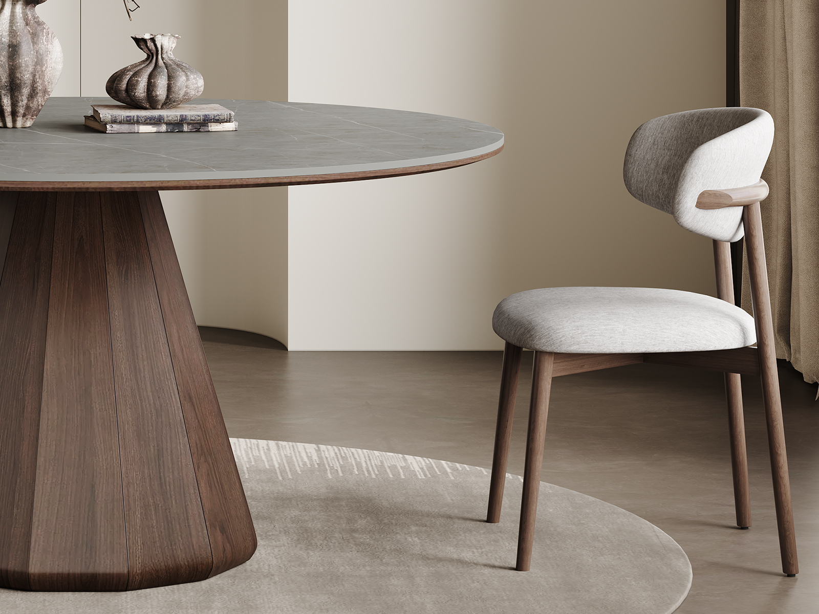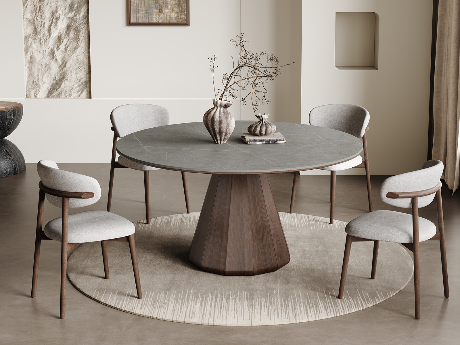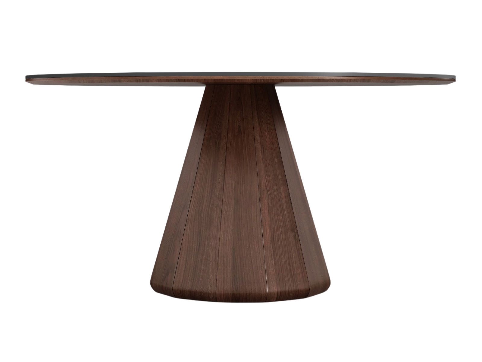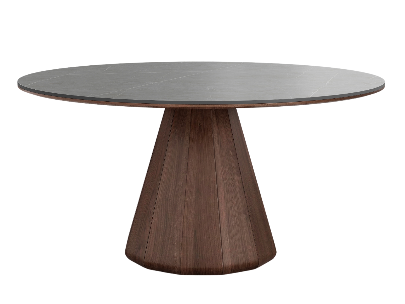 - Andrea 53 in round dining table with white-oak base and white ceramic top.