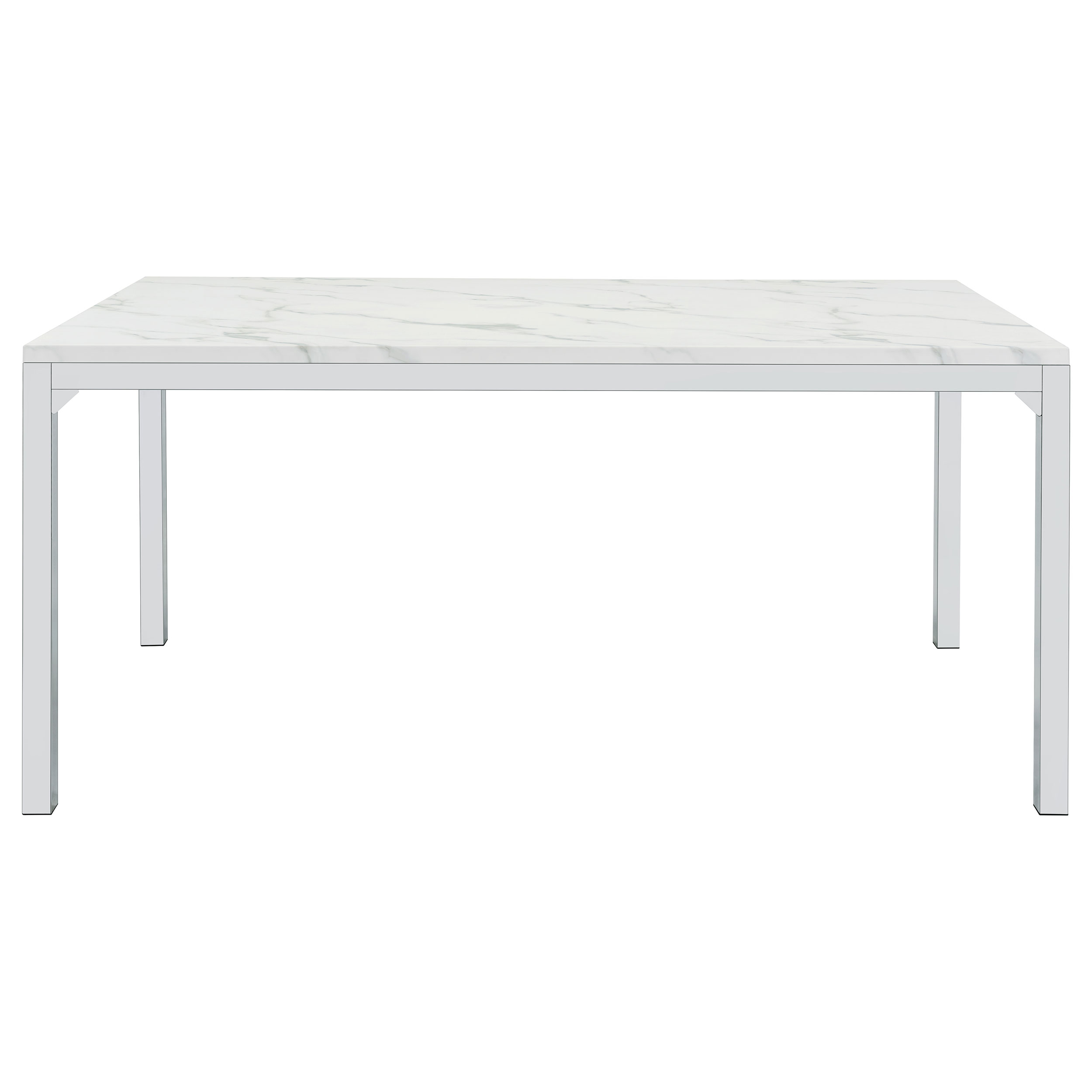 Dress up a dining room with striking, modern opulence. This gorgeous, contemporary dining table flaunts a smooth, white, marble top for a luxurious design that’s sure to impress. The table base is made with top-quality metal in a gleaming chrome finish that shines in the light. From everyday dinners to elaborate feasts, the rectangular surface provides all the space you need for family dining enjoyment. Surround this modern table with your favorite chairs to complete a formal dining room in style.