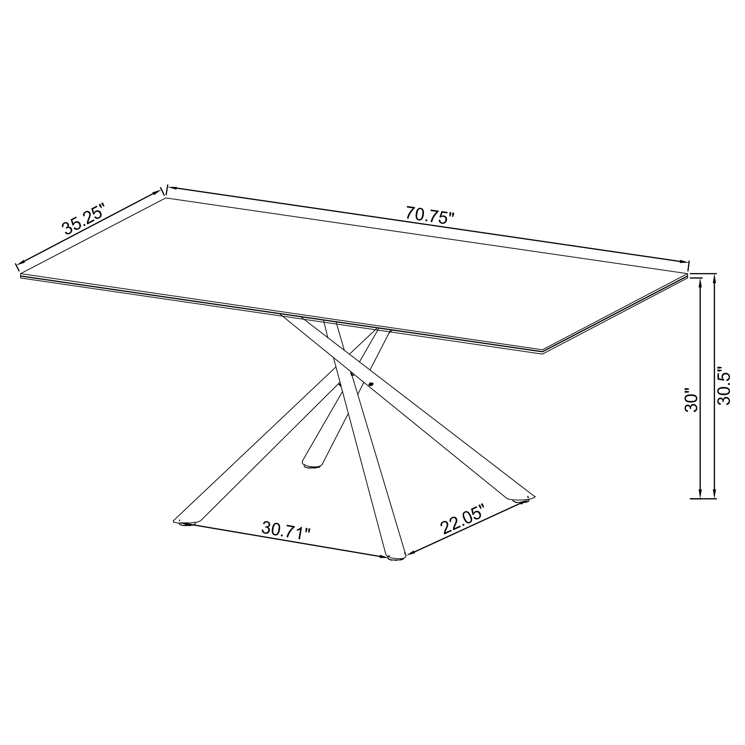 Gorgeous sintered stone brings depth and dimensionality to a modern rectangular dining table. A true centerpiece in your kitchen or dining room, it boasts an enchanting white mirage finish on its table top, offering multi-tonal allure with a hint of glam. The modern design includes a bold sculptural base that provides support with its starburst motif. The base receives a glossy black finish, offering a slick, sophisticated touch of sculpted elegance. Choose seasonal or timeless table linens and enjoy delicious meals with family and friends.