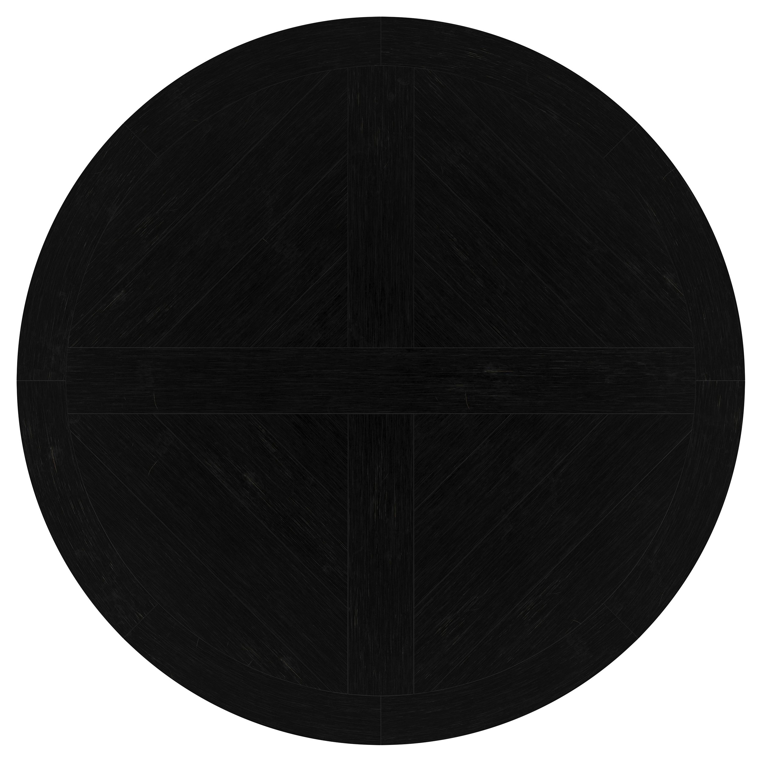 - Inlaid veneer pattern enhances the round tabletop’s refined appeal