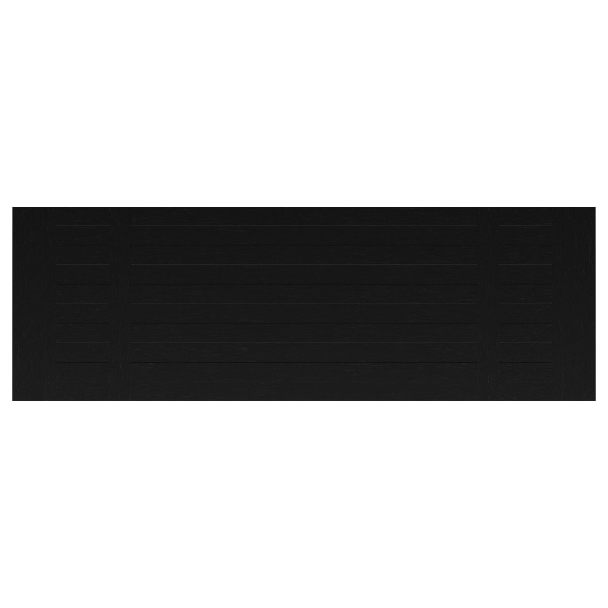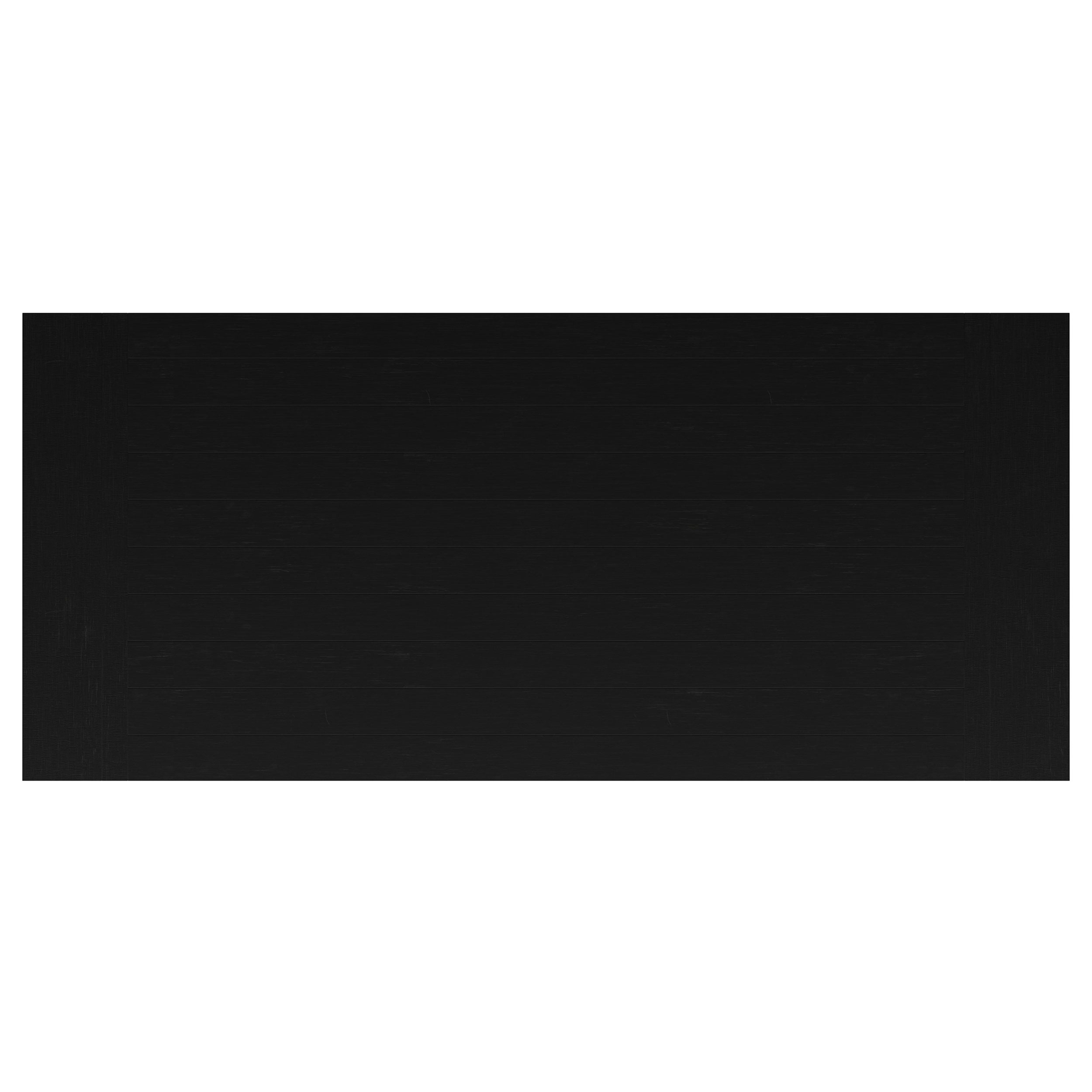 - Planked tabletop highlights natural wood grain with a sleek black finish