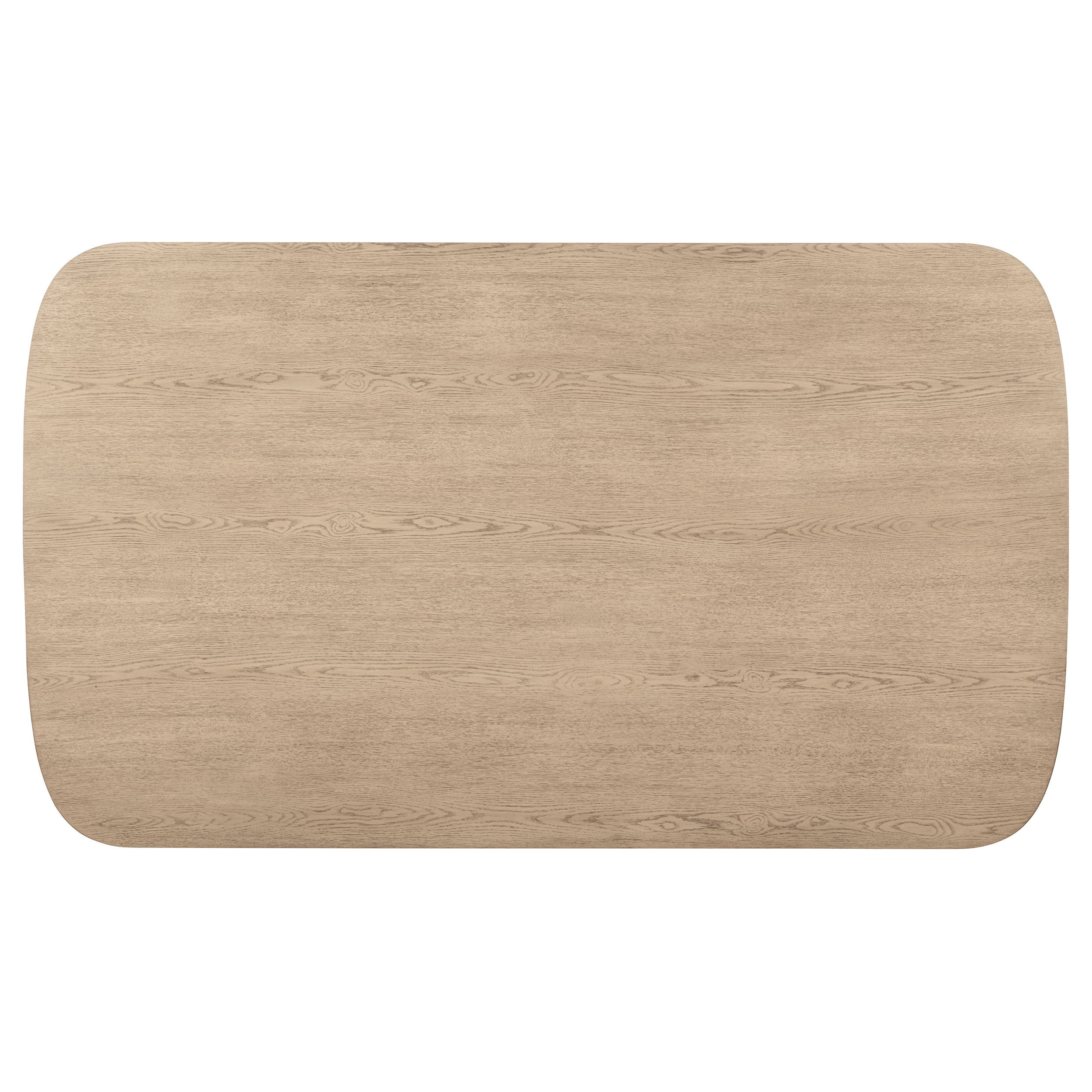 - Counter-height dining table crafted from solid wood, engineered wood, and oak veneer