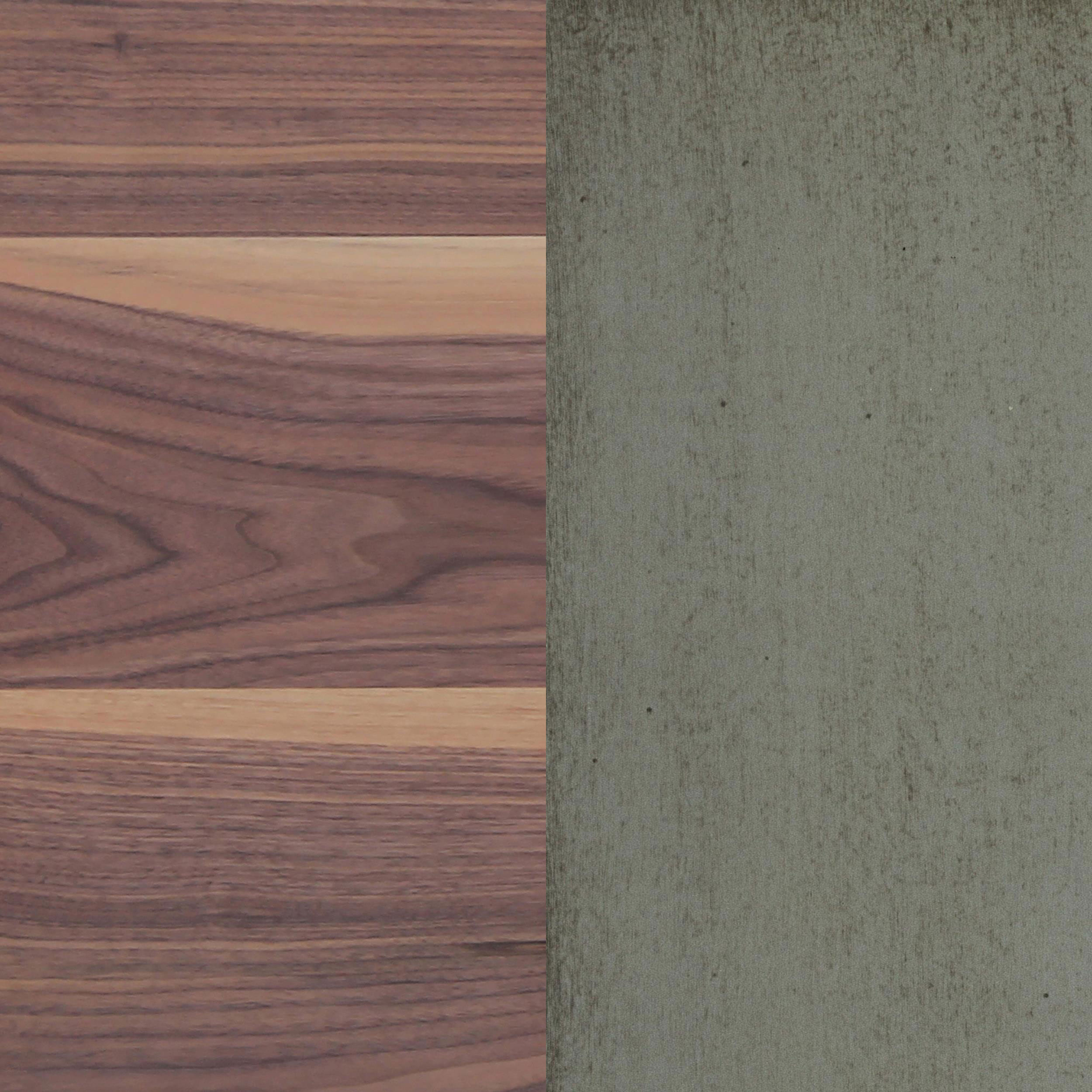 - Table top displays a beautiful open grain with natural wood curls in sappy walnut veneer