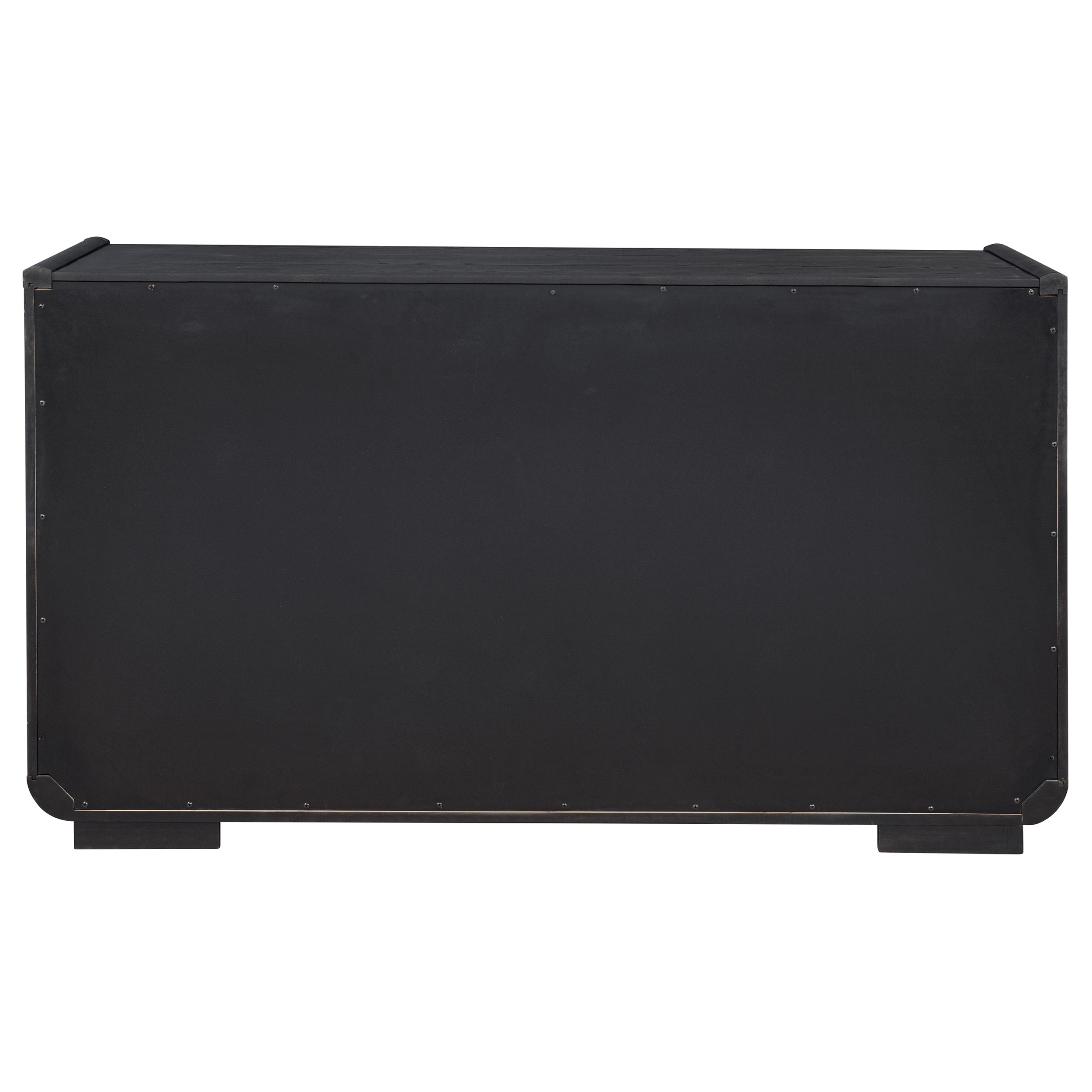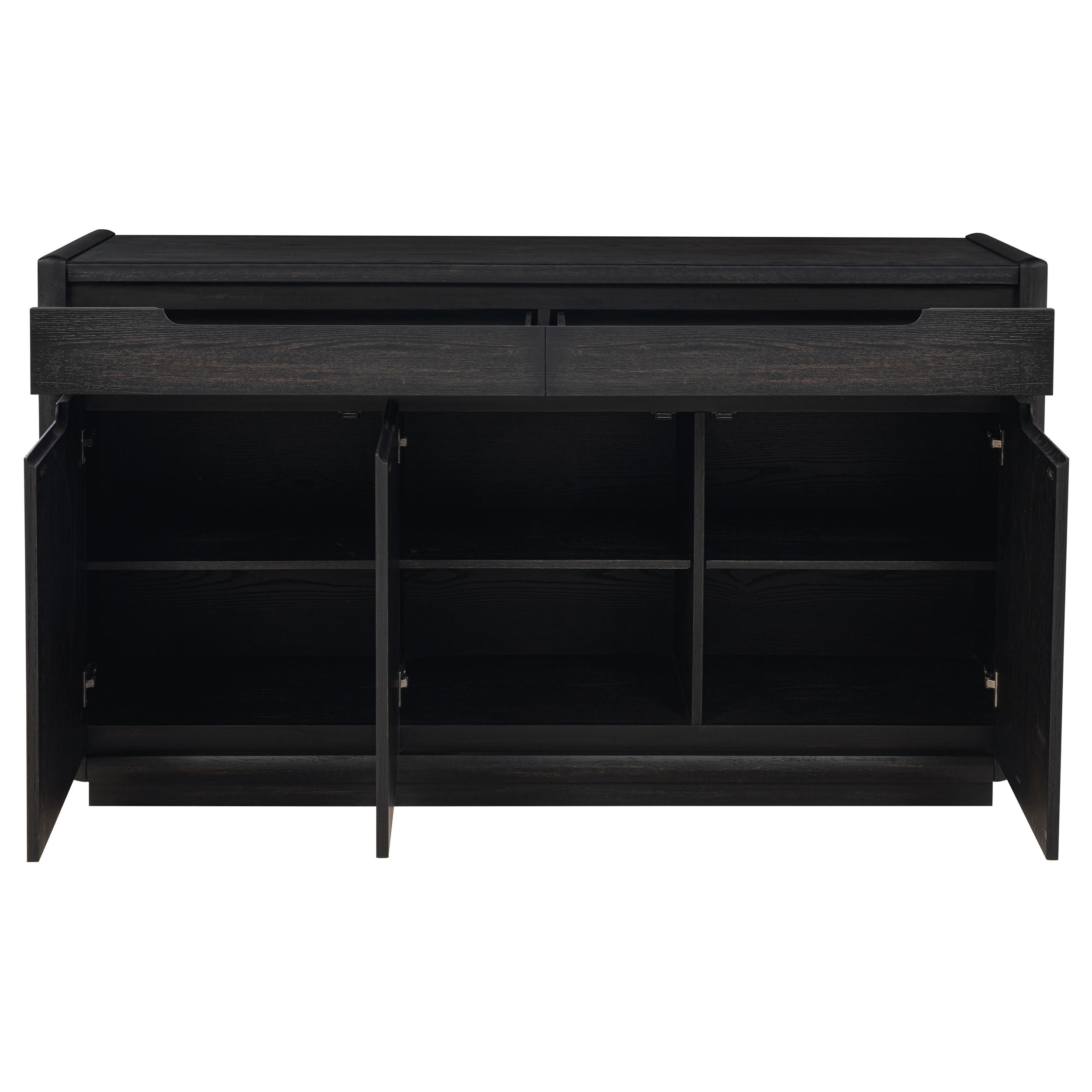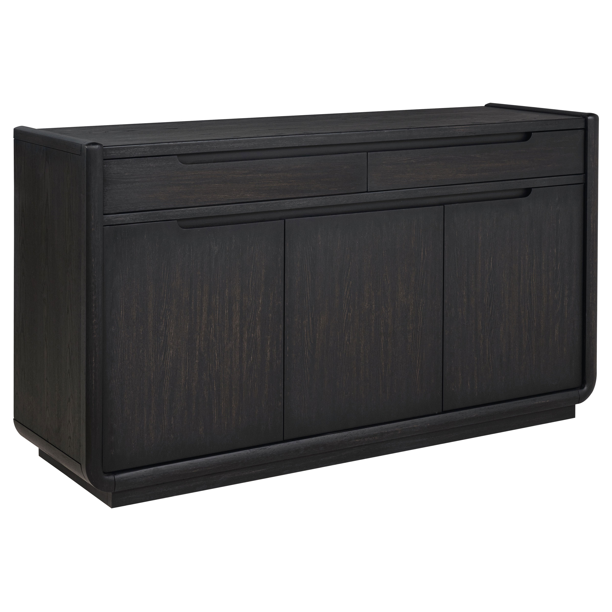 - Dining sideboard in burnished black with sculpted edges and clean, recessed pulls