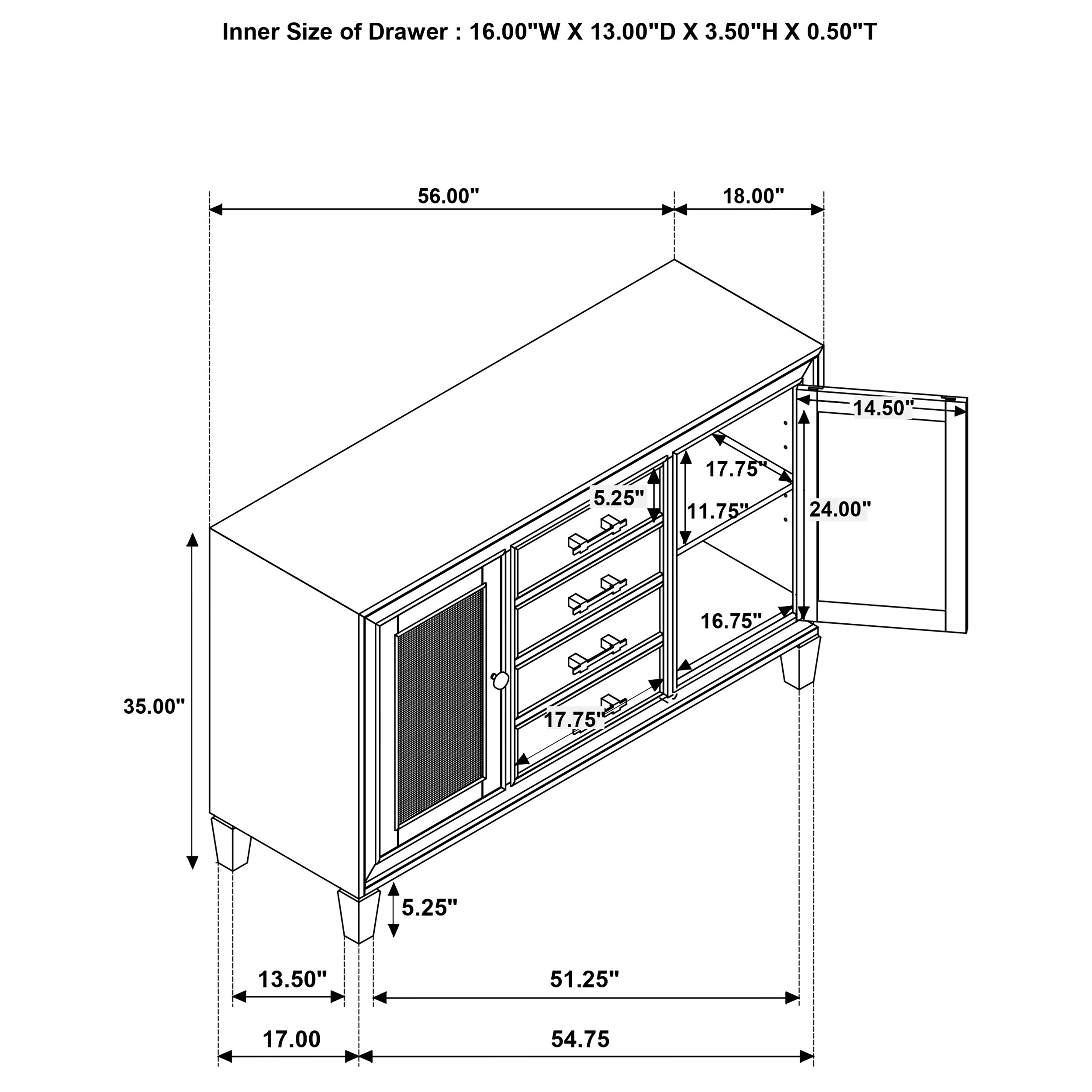 - A two-door sideboard creates inviting ambiance with stylish rattan and understated design