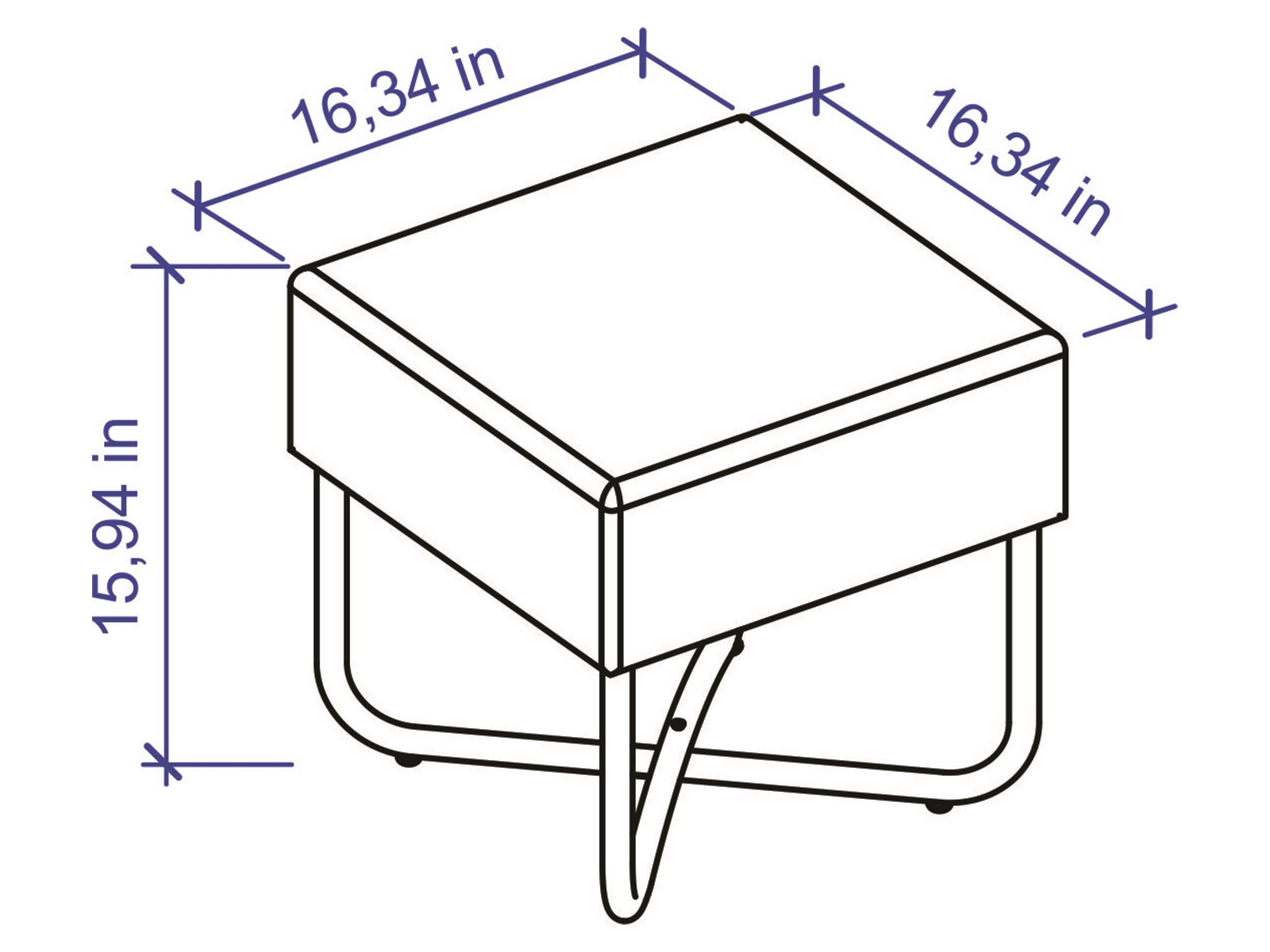 - Size: 16″ W x 16″ D x 16″ H ( Seat: 20″ H )