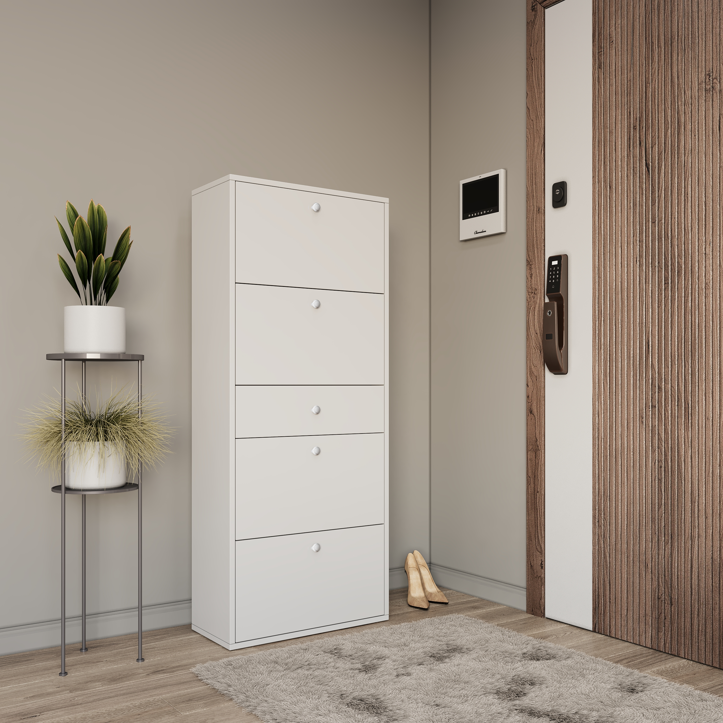Slim, tall, and made for tight entryways or closets. This cabinet keeps shoes hidden and accessible without taking up much floor space.