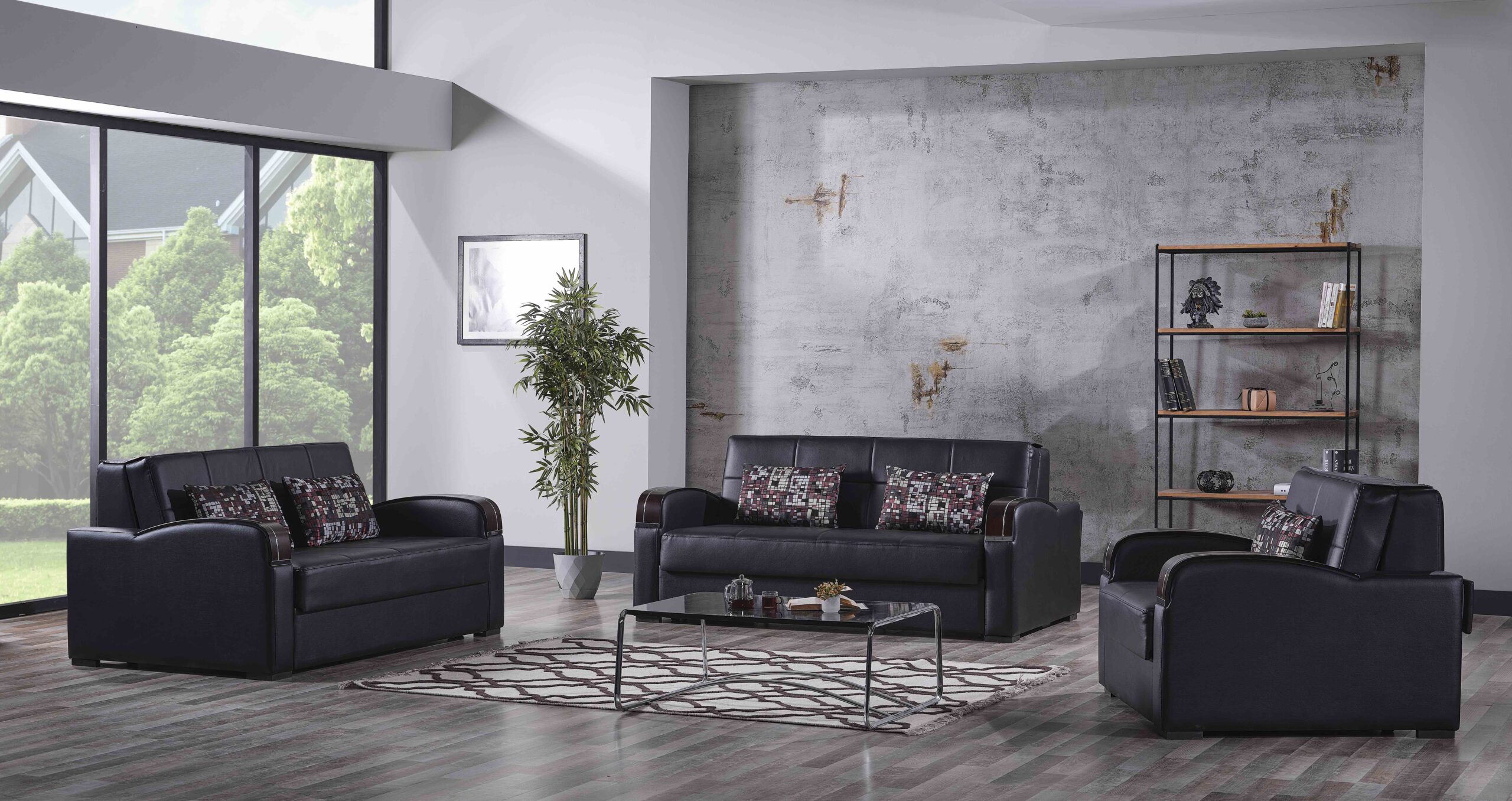 Ottomanson Sleep Plus Collection Upholstered Convertible Armchair with Storage, Black-PU