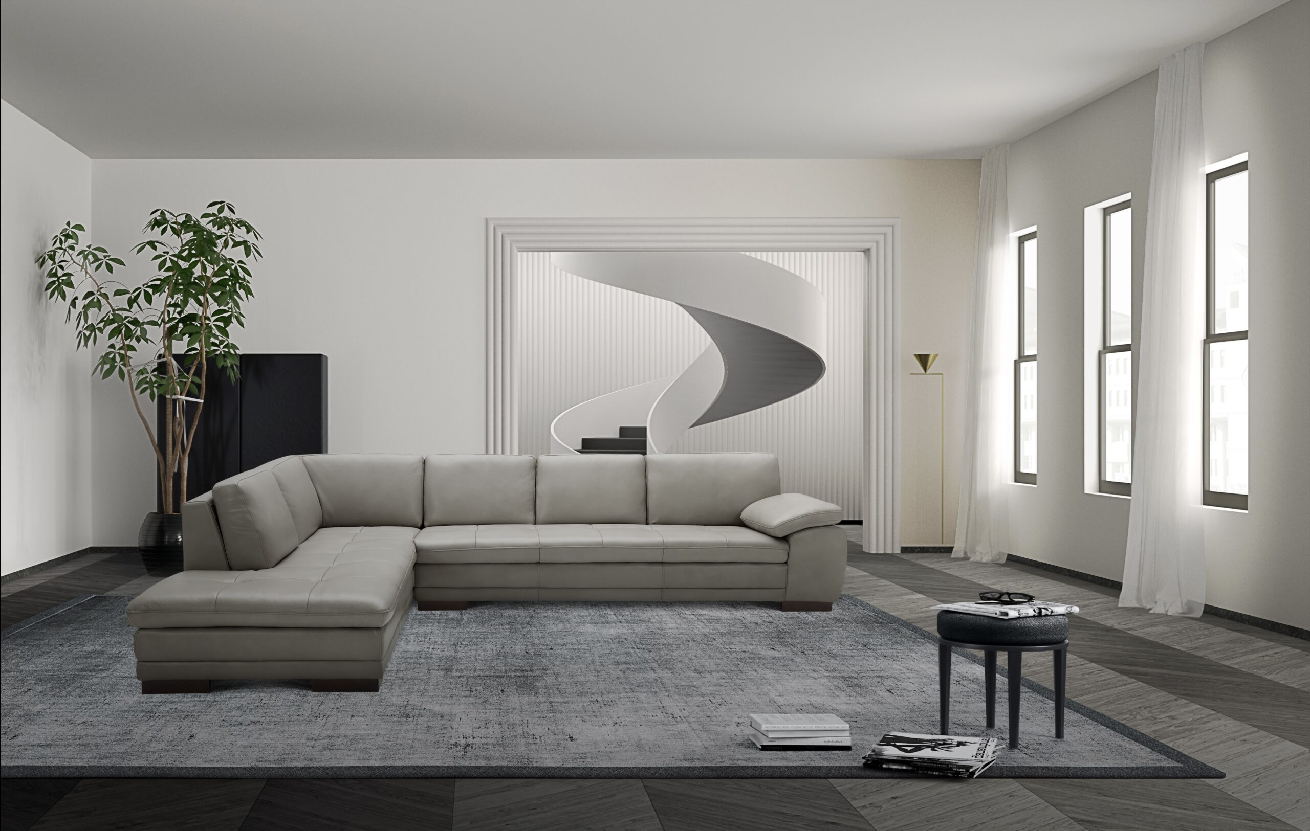 625 Italian Leather Sectional Grey in Left Hand Facing